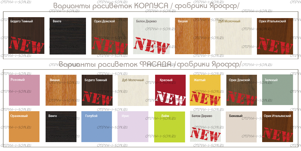 | Доступно в цветах | Корпус: Дуб молочный, Белое дерево, Бодего темный, Венге темный, Винтерберг; Фасад: Лайм, Бетон, Розовый, Голубой, Ирис , Оранжевый, Венге, Белое дерево, Дуб молочный, Винтерберг, Бодего темный |