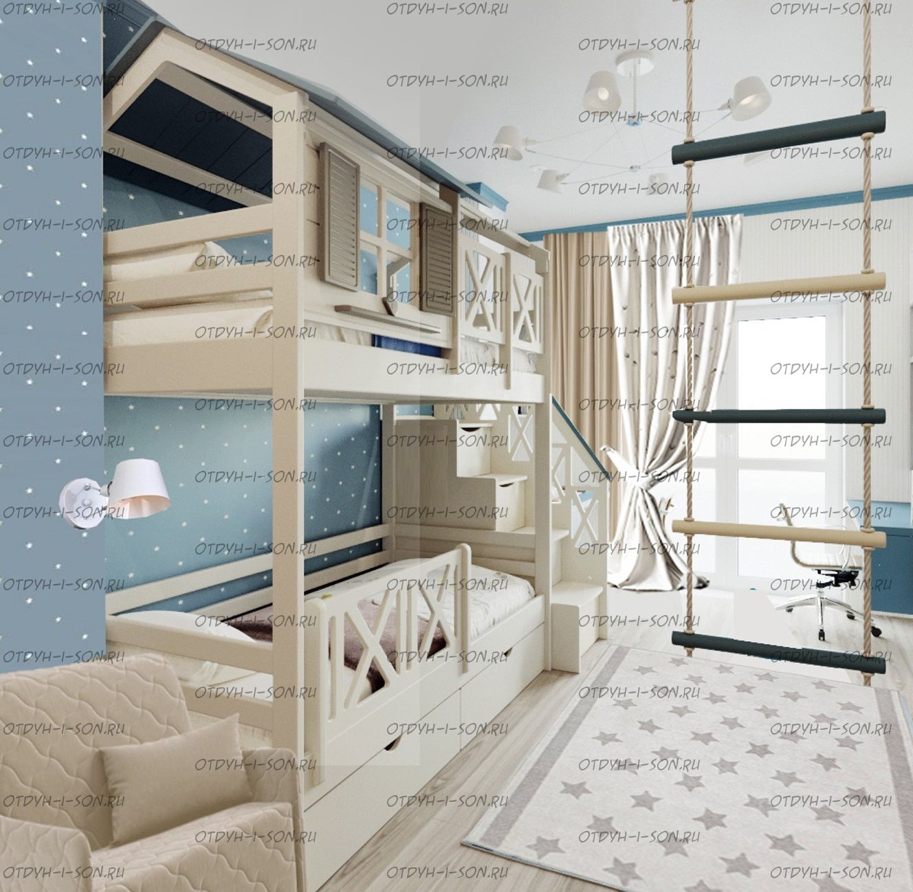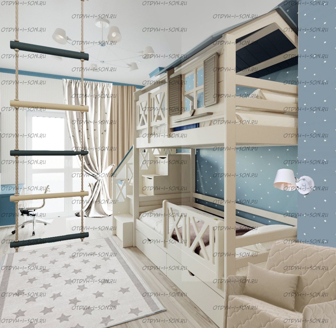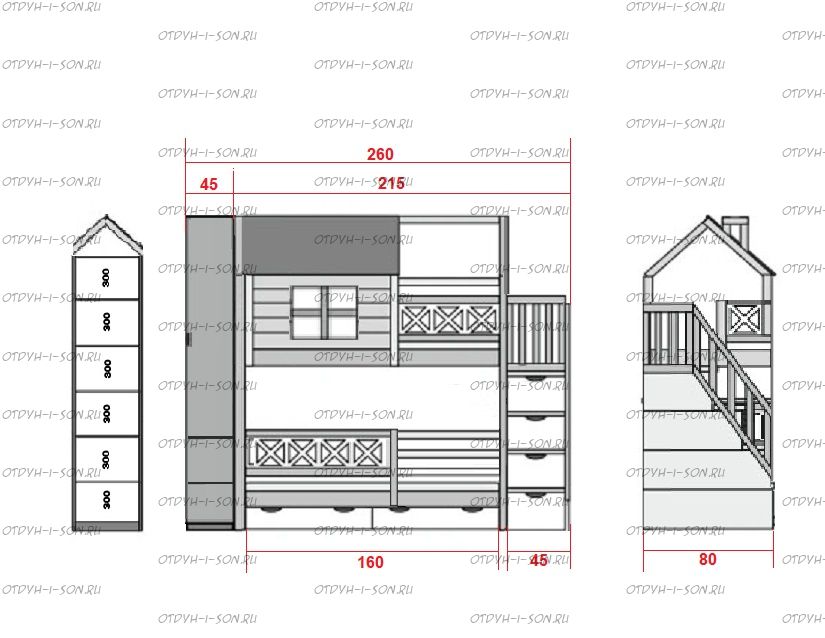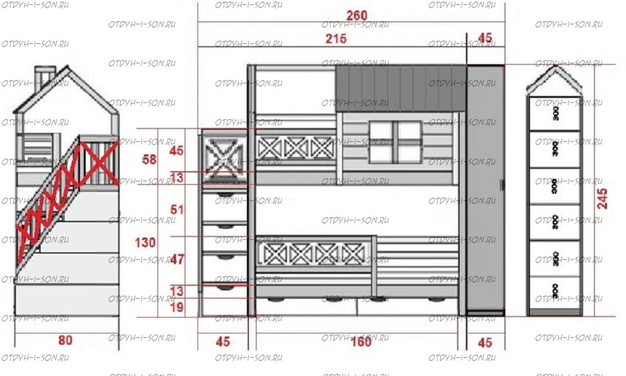 | Тип изделия | Кровать двухъярусная и лестница-комод |