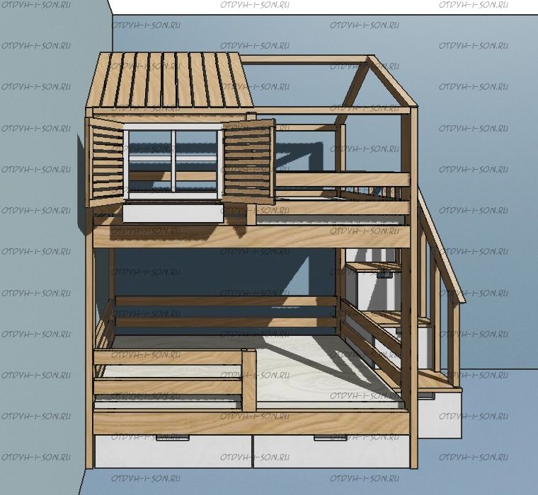 Двухъярусная кровать домик Standard №47 изготавливаем в любых размерах, в том числе и по высоте.