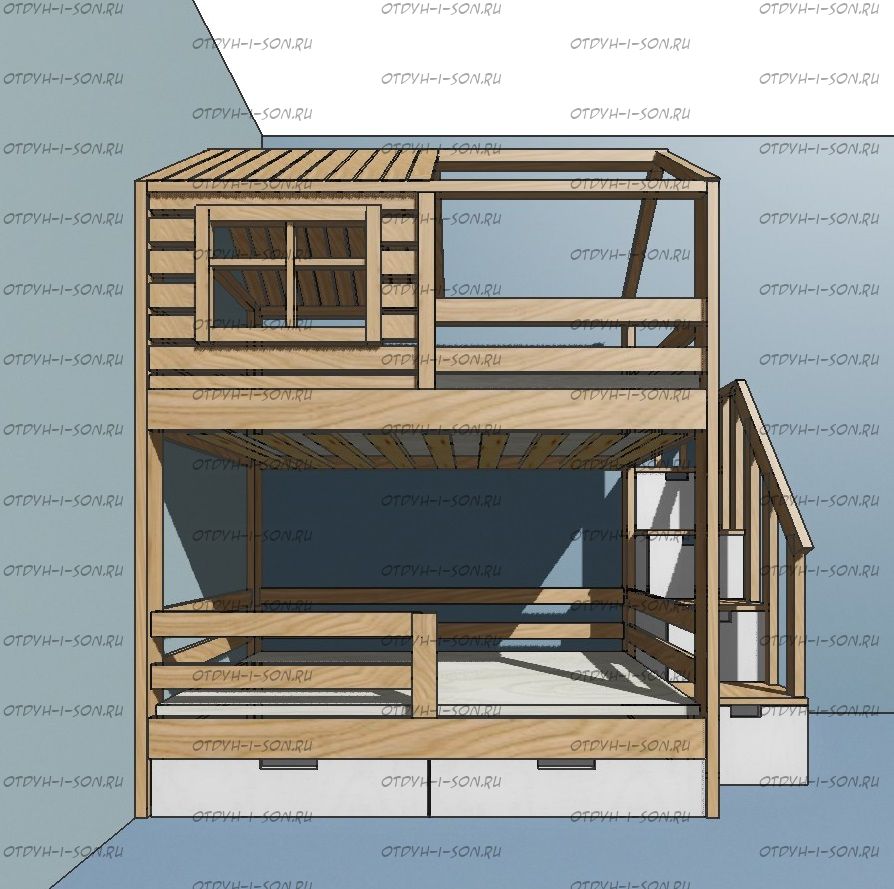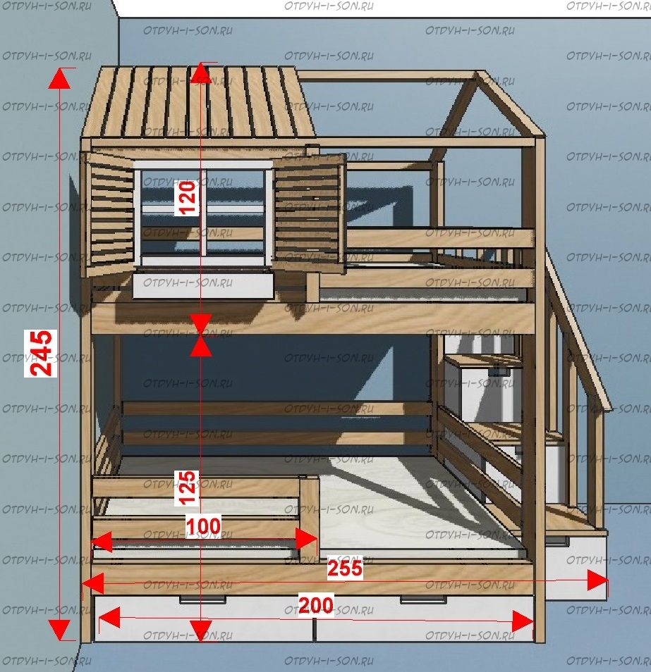 Двухъярусная кровать домик Standard №47 изготавливаем в любых размерах, в том числе и по высоте.