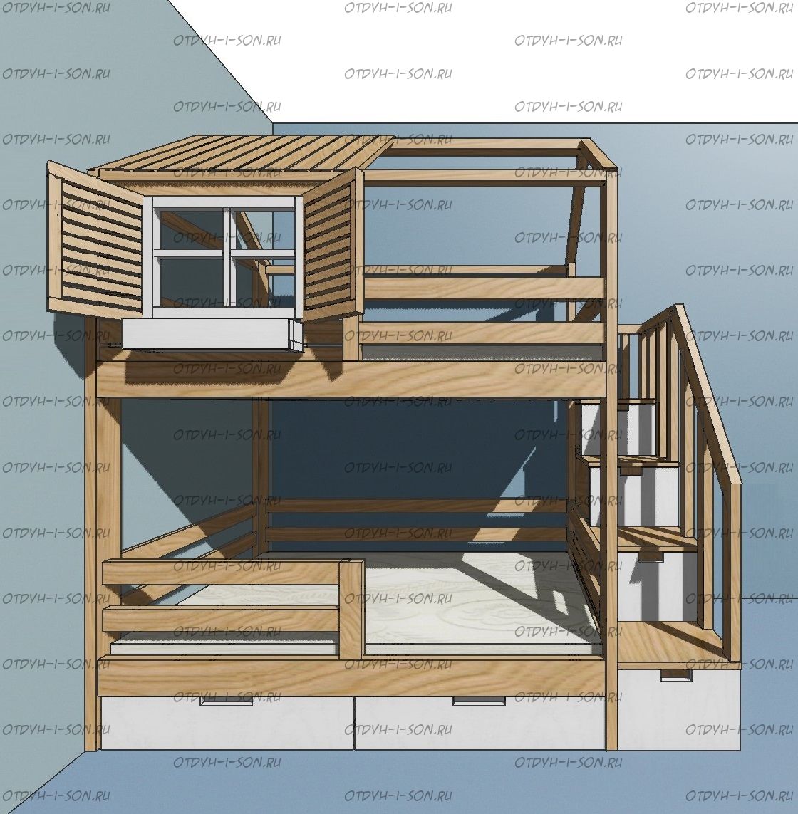 Двухъярусная кровать домик Standard №47 изготавливаем в любых размерах, в том числе и по высоте. Комплектация: Кровать двухъярусная Домик Ящики подкроватные Лестница-тумба Характеристики: •Размеры верхнего спального места: 80х160 см.,90х180 см.,90х200 см.и любые другие •Размеры нижнего спального места: 80х160 см.,90х180 см.,90х200 см.и любые другие •Внешние размеры кровати при размере спального места 90х200 (ШхГхВ): •Внешние размеры кровати с лестницей-комодом сп.место 90х200 (ШхГхВ): •Габаритные размеры: любые •Материалы: массив сосны •Цвет покрытия: любая цветовая гамма (таблица палитры Ral); покраска в стандартный цвет под дерево) 10% Покраска в эмаль 20%