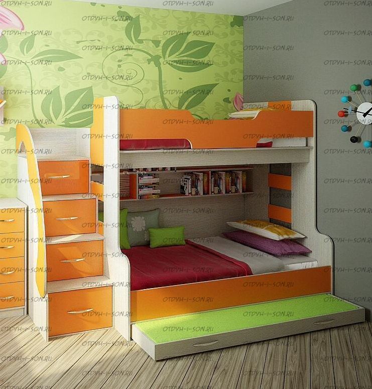 Кровать двухъярусная Фанки Кидз-21 СВ - это кровать для троих детей