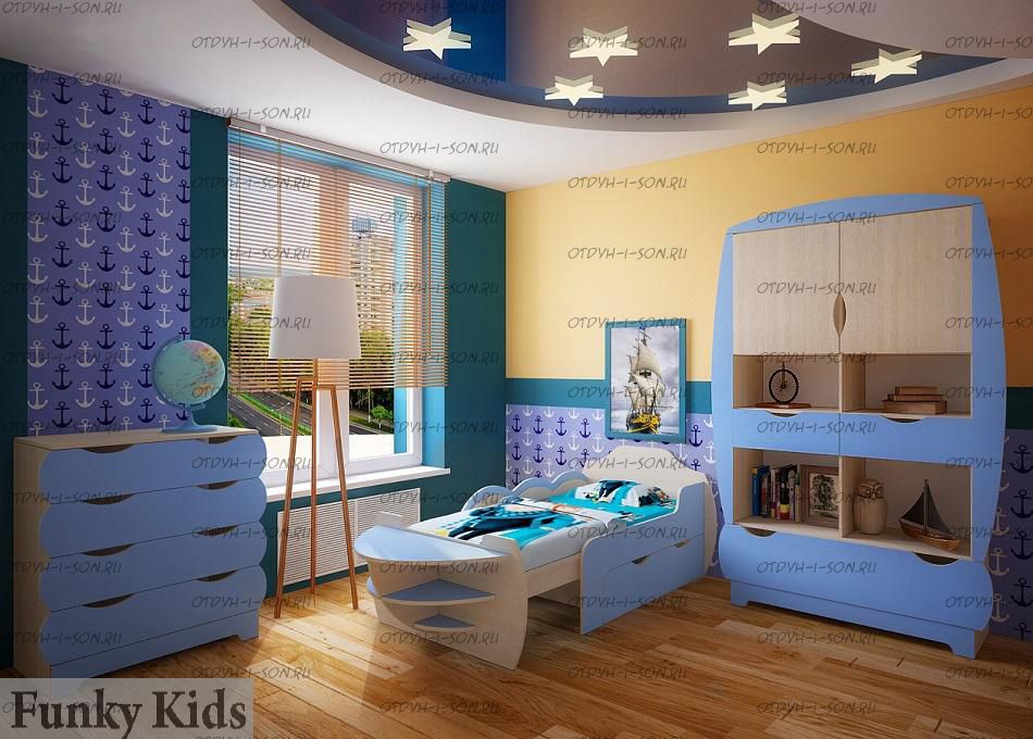 Детская комната Вырастайка №4 Комплектация: Кровать растущая Вырастайка ВР-05 Корабль Комод Вырастайка ВР-015 (ШхГхВ): 916х430х920 мм. Шкаф-стеллаж Вырастайка ВР-012 (ШхГхВ): 1200/1440х386х2000 мм. Характеристики: Размер спального места: 80х120/150/180 см. Материал: ЛДСП 16 мм (Австрия, Egger). Цвет корпуса: Дуб Молочный Цвета фасада: Оранж, Салатовый, Голубой, Розовый