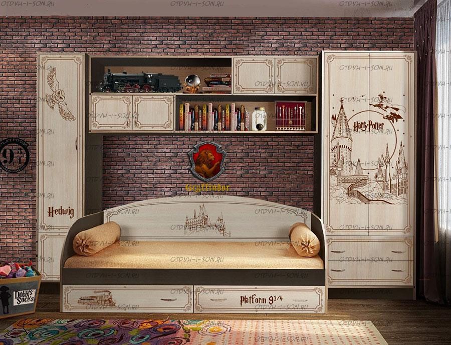 Детская комната Гарри Поттер №1. Детская мебель серии Гарри Поттер - это набор мебели, направленный на создание в комнате ребенка комфортного места сна и отдыха, удобной системы хранения одежды и размещения детских вещей.Каждый элемент мебели представляет собой функциональный и эргономичный модуль для интерьера ребенка или подростка. Каждый фасад - это качественный рисунок прямой уф-фотопечати, а каждая конструкция - прочная и устойчивая.