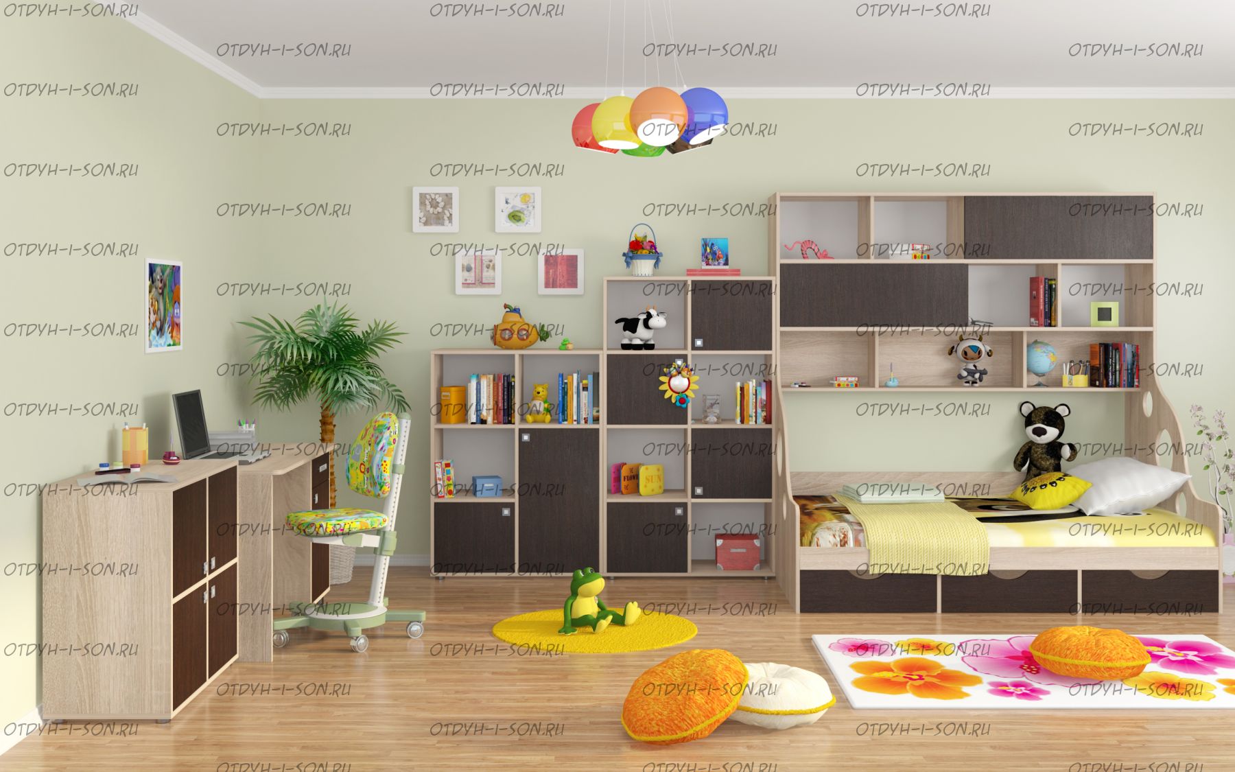 Кровать комната Дельта. Композиция №5 Комплектация: Кровать с антресолью Дельта 21.03 (80Х190), (ДхШхВ: 212х87х204) на выбор Кровать с антресолью Дельта 21.11 (90х190), (ДхШхВ: 196х97х216) на выбор Кровать с антресолью Дельта 21.01 (120Х190), (ДхШхВ: 196х127х216) на выбор Стол письменный Дельта-15/1 Стеллаж Дельта-7.03 Тумба Дельта-7.02 Тумба Дельта-7.01 Характеристики: Размер спального места: 120Х190см. Вес: Объем: Кол-во упаковок: Цвета корпуса: дуб молочный, дуб сонома, венге, орех Цвета фасадов: ольха, оранжевый, орех, дуб молочный, голубой, салатовый, крем ваниль, розовый, салатовый, венге, зеленый текстиль, желтый