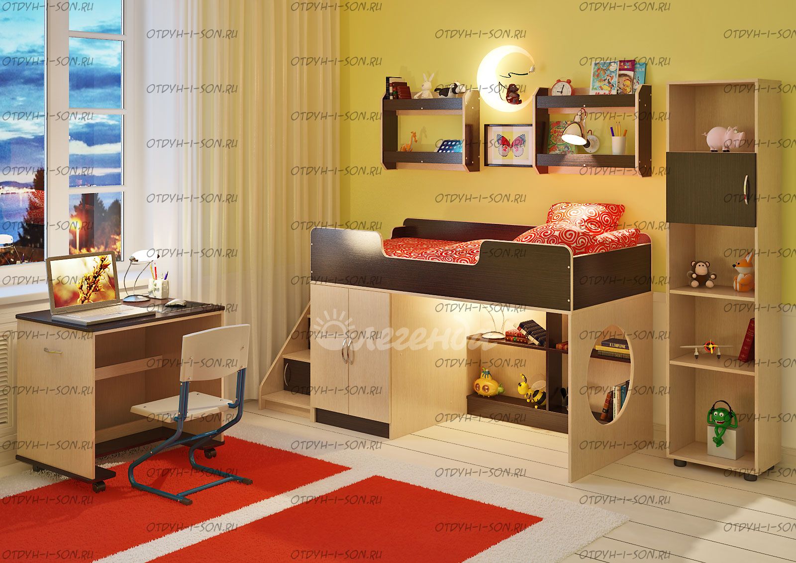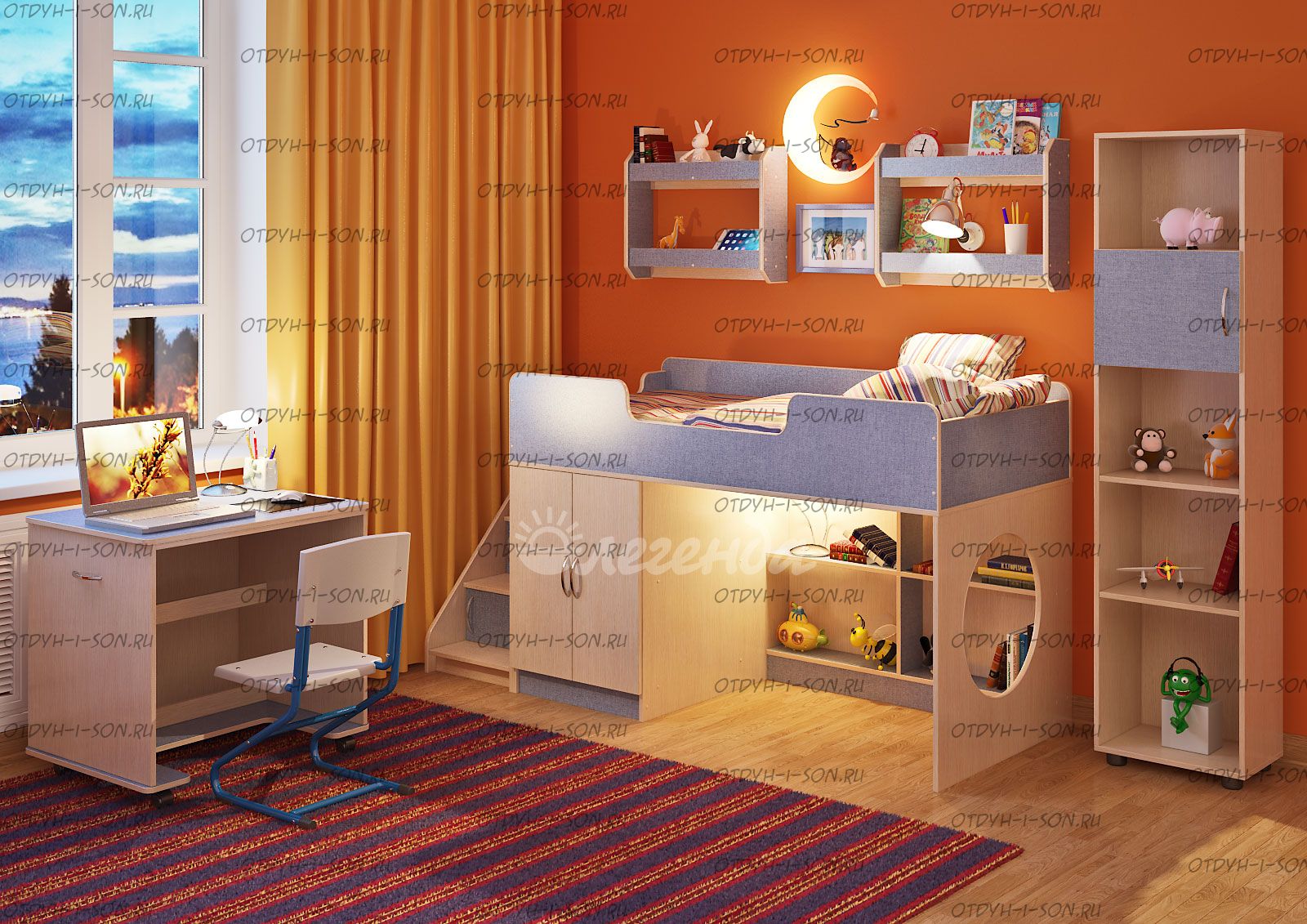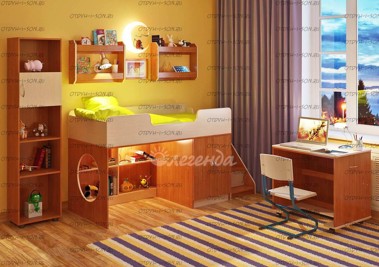 Детская комната Легенда-2.13 - это удобный, компактный и функциональный комплект детской мебели, идеальный вариант по соотношению цена-качество. Наполнение кровати бьет все возможные рекорды по количеству встроенных предметов мебели.