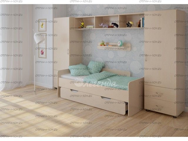 етская стенка с выдвижной кроватью Легенда №16 - это удобный, компактный и функциональный комплект детской мебели.