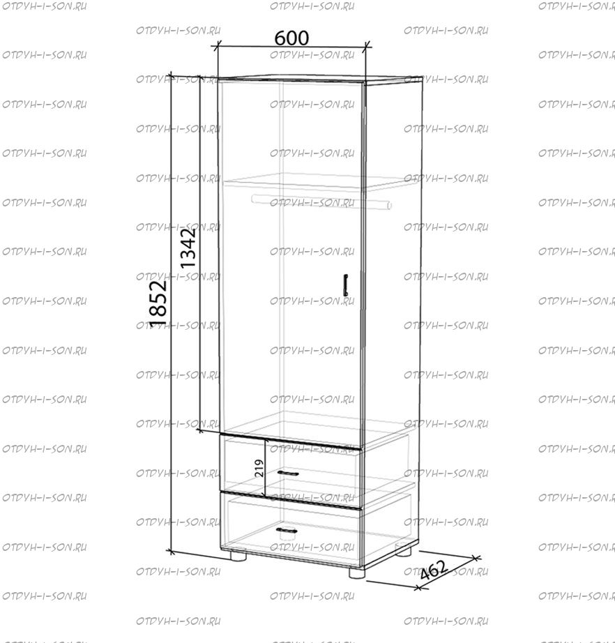Два пенала Л-О1 - Компактные одностворчатые пеналы оснащены штангой для «плечиков» и полкой для головных уборов наверху, а внизу - двумя выкатными ящиками. В качестве опоры служат четыре ножки, снижающие вред для полового покрытия при перестановке. Вы можете выбрать пеналы как одинаковой, так и разных расцветок – подберите цвет вместе с детьми!
