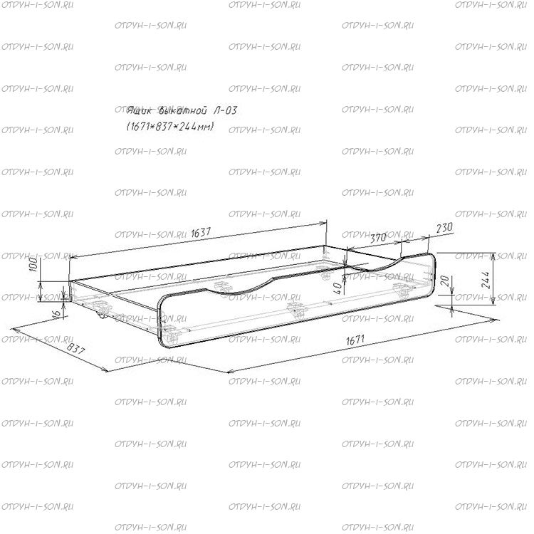 Выкатной ящик Л-03 - Выдвижной ярус спроектирован таким образом, что может быть использован и как ящик для хранения вещей, и как отдельное спальное место! Бортики ящика легко вмещают в себя матрас, что превращает ящик в полноценное спальное место 1600х800,которое при необходимости можно спрятать под кровать.