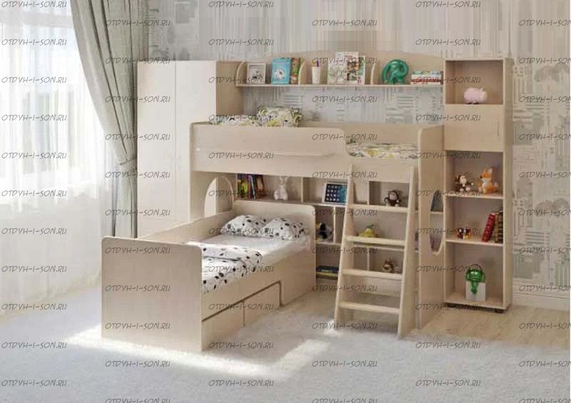 Детская комната Легенда-2.11 Комплектация: • Кровать-чердак (без матраса), размеры: 164Х84Х112см • Шкаф, встроенный в кровать-чердак с полками для одежды, размеры: 60Х60Х81см • Стеллаж для книг, встроенный в кровать-чердак размеры: 102Х13Х81см • Стеллаж отдельностоящий, Габариты: 450*296*1845мм. • Комод, Габариты: 758*462*750мм. • Полка навесная, Габариты: 800*156*140мм. Характеристики: Внешние габариты: 164Х84Х112см Спальное место: 80Х160см Высота борта: 30см Игровая зона: 102Х67Х81см Ширина лестницы: 45см Рекомендуемая высота матраса: 5-15см Лестница: универсльная, можно установить сбоку или спереди слева или спереди справа кровати. Мебель универсальная, может быть собрана в лево- или правостороннем варианте Различие между кроватями Легенда-2 и Легенда-3: В размерах по ширине и высоте Складская программа Вес: 161 кг. Объем: 0,337 м3 Все цвета в наличии Цвет корпуса: ольха, венге светлый Цвет фасада: венге светлый, ольха, венге темный, голубой, оранжевый, розовый, лайм Кровати Легенда, Карлсон и Итальянские мотивы комплектуются следующими матрасами: Матрас Эконом Д-10 Матрас Confy Respekt + Матрас Стандарт 3 N Матрас Люкс-Д-10 Матрас Комфорт Люкс 1 H Матрас Элит Эконом H Матрас Airy Матрас Lovely Престиж H