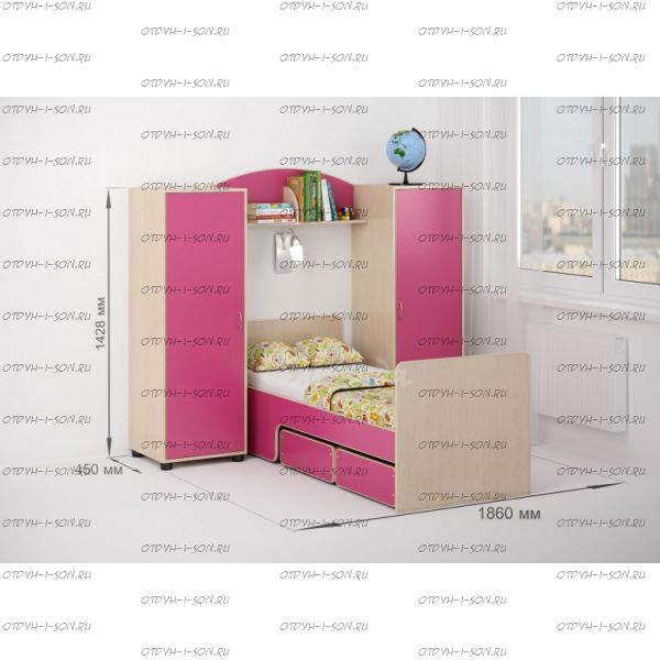 Детская комната Легенда-27 Комплектация: Кровать Легенда-40 (ШхГхВ): 1786х754х678 мм. Полка Легенда Л-5 (ШхГхВ): 902×176×312 мм. Шкаф-пенал Легенда Л-03 (ШхГхВ): 478х450х1428 мм. Шкаф-пенал Легенда Л-02 (ШхГхВ): 478х450х1428 мм. Характеристики: Размер спального места: 70х175 см. Внешние габариты (ШхГхВ): 1860х450х1428 мм. Рекомендуемая высота матраса: 10-15 см Складская программа Вес: Объем: Все цвета в наличии Цвет корпуса: ольха, венге светлый Цвет фасада: венге светлый, ольха, венге темный, голубой, оранжевый, розовый, лайм Кровати Легенда, Карлсон и Итальянские мотивы комплектуются следующими матрасами: Матрас Эконом Д-10 Матрас Confy Respekt + Матрас Стандарт 3 N Матрас Люкс-Д-10 Матрас Комфорт Люкс 1 H Матрас Элит Эконом H Матрас Airy Матрас Lovely Престиж H