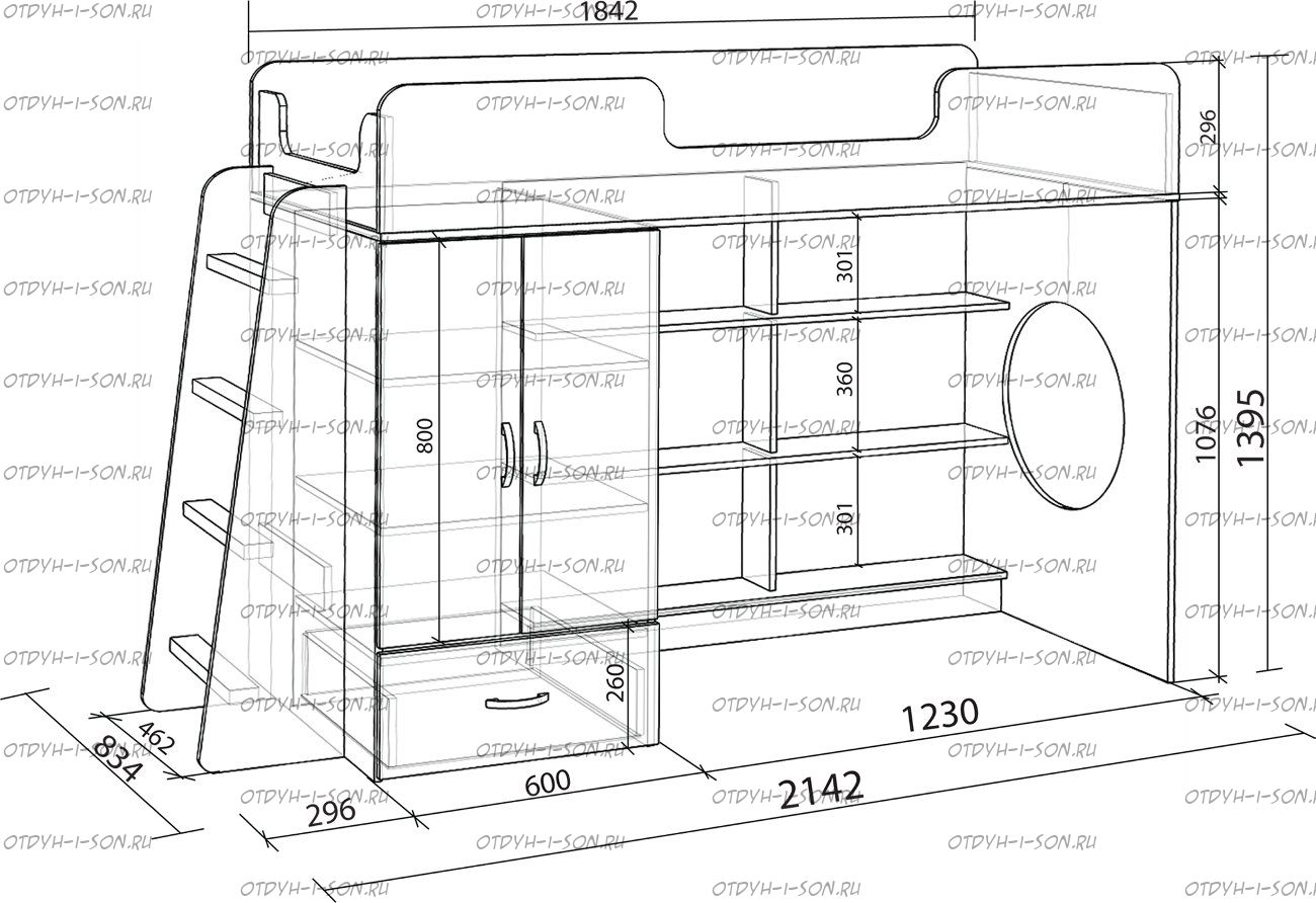 Двухъярусная кровать двумя спальными местами - 1800х800 и 1600х700.