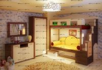 Данная композиция создаст гармонию и уют в детской комнате. Сказочная тематика присутствует в модули Фанки Хоум. Дополняет композицию модули из серии мебели Фанки Тайм двухстворчатый шкаф ФТ-05 со штангой и полкой. Комод ФТ-01 с ящиками и дверцами. Корпус выполнен в современном цвете дуб шамони/дуб бельфорд. Мебель сертифицирована.