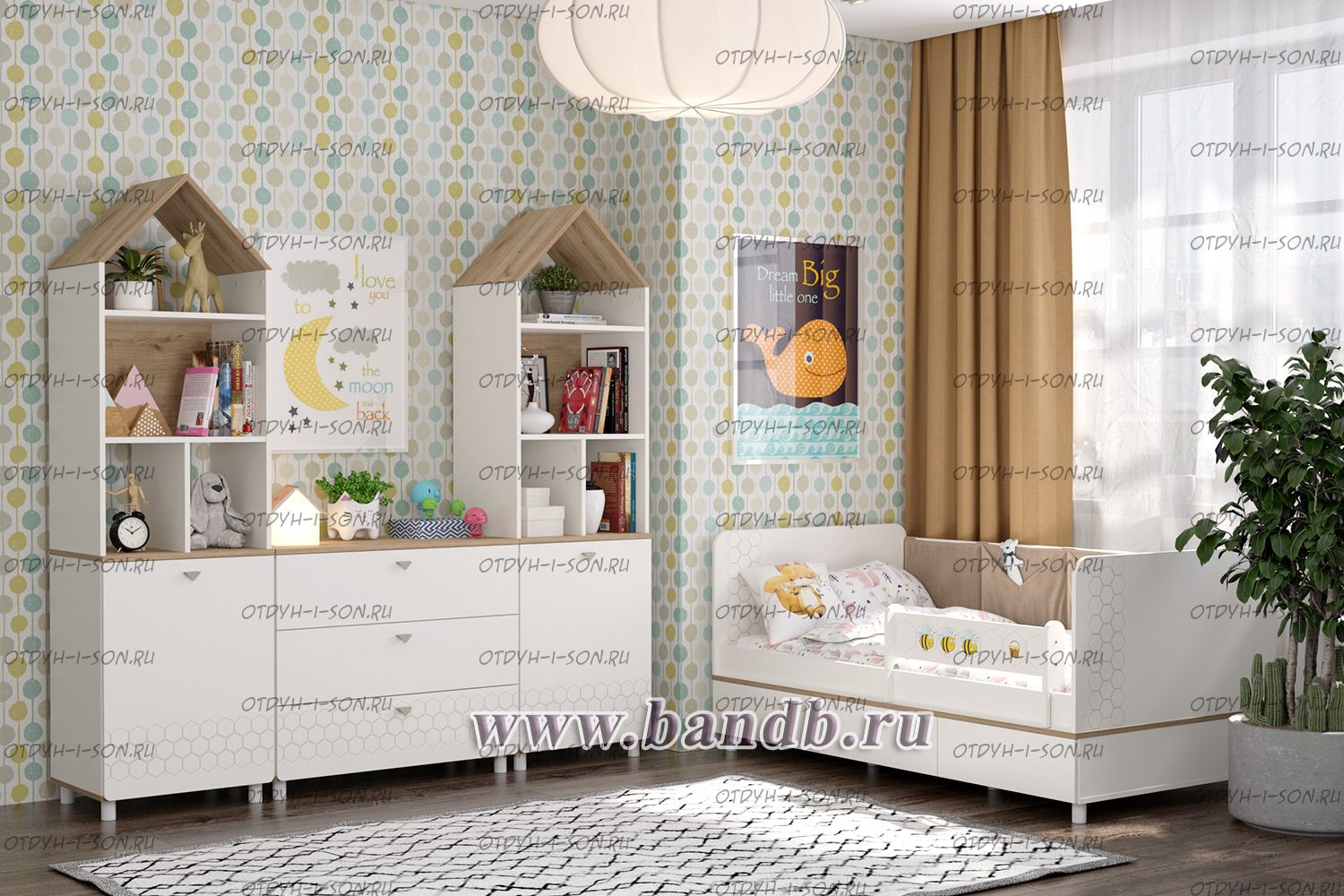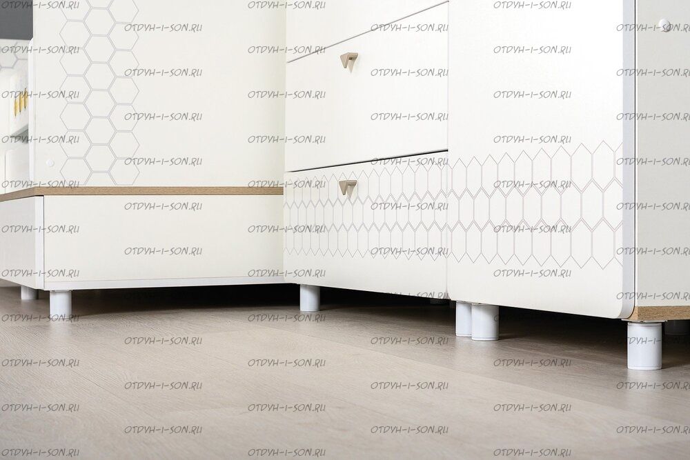 На фасаде скандинавские геометрические мотивы универсального цветового решения делают эту мебель подходящей и девочкам, и мальчикам.