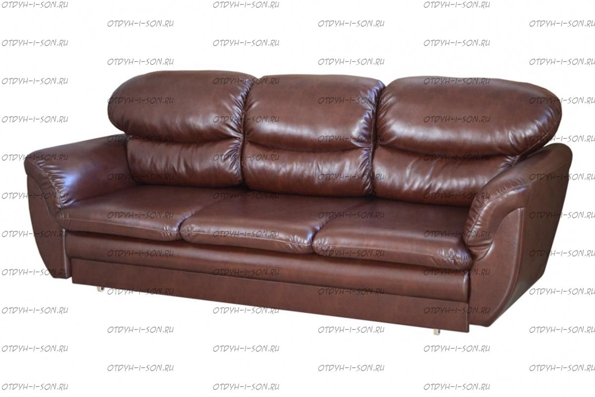 Диван Саймон выполнен в материалах: Ткань-основа: Ostin brown (искусственная кожа) Наполнение подушек: Синтепух. Чехлы на подушках съемные, есть молнии.. Внешние габариты (мм): 2420 х 1130 х 740. Высота сиденья от пола (мм): 430. Декоративные подушки: Нет. Механизм трансформации: Еврокнижка. Количество посадочных мест: 3 места. Подлокотники: Да. Объём: 1,8