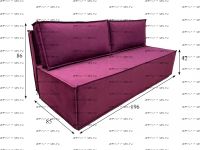 Диван Стейси-1 Характеристики: Размеры спального места: 142х196 Габаритные размеры (ДхШхВ): 1960х850х860 Высота сиденья от пола: Механизм трансформации: Еврокнижка Наполнение спального места: блок ППУ ST стандартный Наличие ящиков: Есть бельевой ящик из ЛДСП. Возможность изменения размеров: Возможно изготовление 2-х размеров ширины: 1600 и 1400. Особенности: Наполнение подушек: Формовый ППУ. Чехлы на подушках съемные, есть молнии. Материал корпуса: Брус хвойных пород, фанера, ЛДСП Вес: 70 кг Объем: Сертификаты: вся продукция имеет гигиенические сертификаты соответствия. Цвет обивки: любой на Ваш вкус, более 100 цветов.