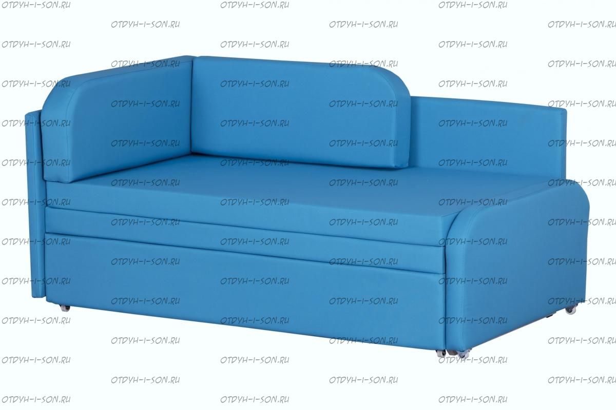 Диван детский Маквин выполнен в материалах: Ткань основа: Neo Azure Угол правый Диван универсальный - собирается как подлокотник слева, так и справа. . Внешние габариты (мм): 1420 х 780 х 700. Высота сиденья от пола (мм): 400. Декоративные подушки: Нет. Механизм трансформации: Выкатной. Количество посадочных мест: 3 места. Подлокотники: Да. Объём: 1,4