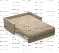Диван-кровать Характеристики: Размер спального места, см: 140х200 Гарантия, месяцев 18 Размеры: Ширина, см 155 Глубина, см Высота, см Масса брутто, кг Объем упаковки, куб. м Материал обивки велюр Наполнитель Пружинный блок Материал корпуса ДВП, массив хвойных пород Тип поверхности обивки матовый Компоненты, входящие в комплект ящик для белья, 2 декоративные подушки Количество сидячих мест 2 Количество декоративных подушек 2 Подлокотники с обеих сторон Бельевой ящик да Эффект памяти формы нет Количество спальных мест 2