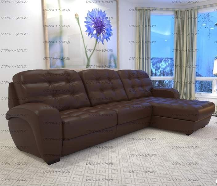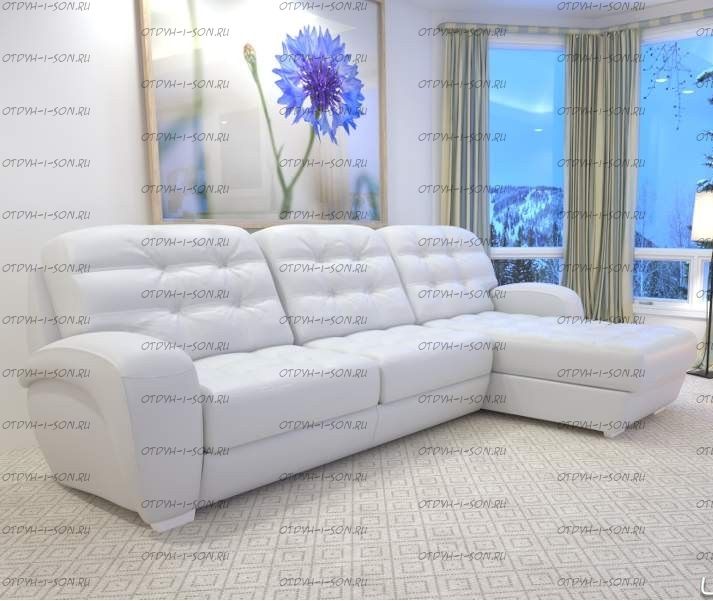 Диван с оттоманкой Соло Характеристики: Внешние габариты (ШхГхВ): 2640х1720х1050 мм. Материал: Цвет: разные варианты цветов обивки по желанию заказчика