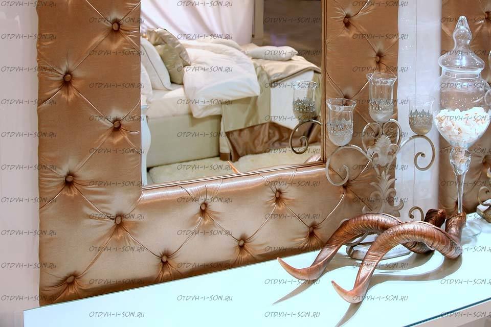 Зеркало Speculo GM 07 Характеристики: Внешние габариты (ШхГхВ): 1200х2200 мм. Материал: Цвет: разные варианты цветов обивки по желанию заказчика Данная мягкая мебель может быть изготовлена с любыми видами стяжки, а так же с каретной стяжкой ручной работы, на заказ, по любым эскизам или фотографиям.
