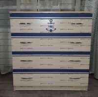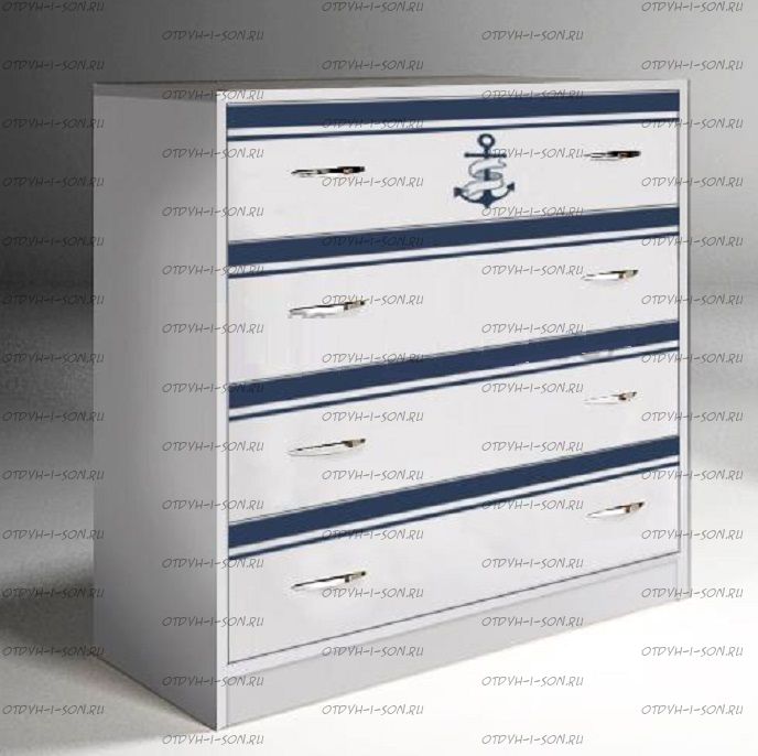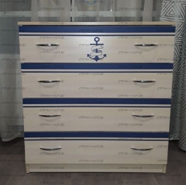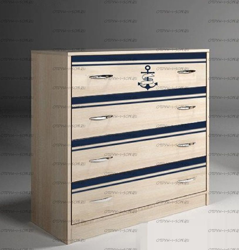 Комод Капитан КП-13/5. Комод детский, арт. КП-13/5 - модуль для хранения, с помощью которого комнаты ваших детей всегда будут сиять чистотой и порядком. Понятная и удобная конструкция с 4-мя выдвижными ящиками (роликовые направляющие) станет полезным приобретением для любого интерьера. А уникальный декор фасада с морским мотивом создаст неповторимую атмосферу легкости и свободы, от которой захочется мечтать о далеких странах и путешествиях. Производится модуль в цвете дуб кремона и сочетается практически с любой мебелью с нашего сайта. Особое внимание стоит уделить серии Капитан и Фанки Кидз.