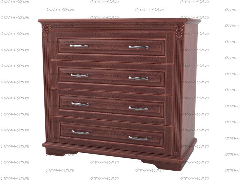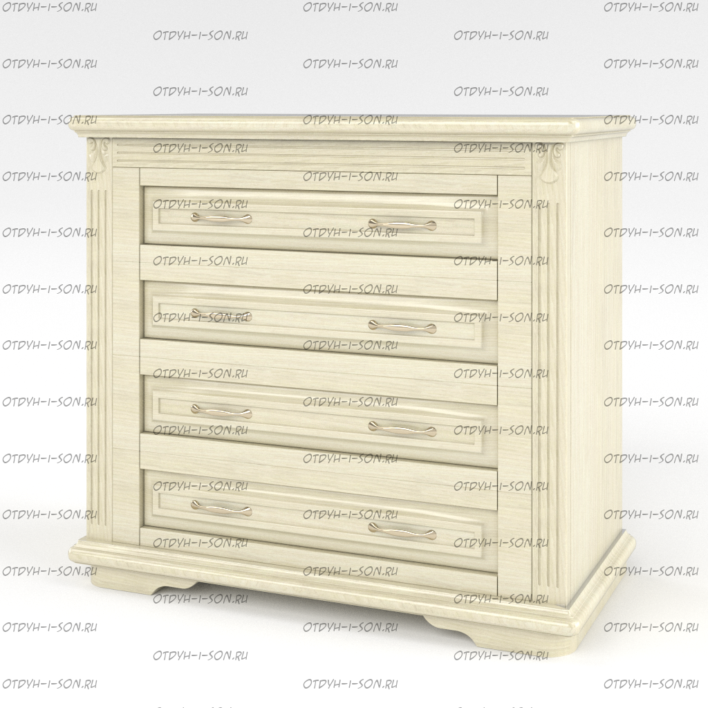 Комод Палермо Массив DreamLine (104х53х94,6) Характеристики: Внешние габариты (ШхГхВ): 104х53х94,6 см 4 выкатных ящика с телескопическими направляющими Материал: массив бука, массив ясеня Цвет массива бука: слоновая кость, груша, орех, орех патина, орех мокко,старая вишня, красное дерево, каштан, венге, олива, серый. Цвет массива ясеня: белый, белый серая патина, белый золотая патина, слоновая кость, беленый дуб, дуб сономо, натуральный ясень,натуральный дуб, груша, пинотекс, дуб золотой, орех, орех мокко, старая вишня, красное дерево, каштан, венге серебряная патина, венге, олива, серый. За цвета из массива ясеня: натуральный ясень, груша, беленый дуб – прибавляется 10% к стоимости, белый золотая патина, венге серебряная патина, белый серая патина – 15% За цвета из массива бука: груша, натуральный бук, беленый дуб - прибавляется 10% к стоимости, орех патина - 15%