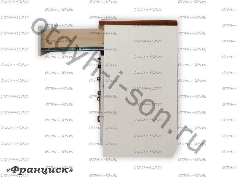 Коллекция "Франциск" - это новинка от фабрики ВМК-Шале. Мебель "Франциск" объединила в себе многолетний опыт в производстве мебели для спальни. Шелковисто-матовая, молочно-белая эмаль, которой покрыты дверцы шкафов и ящиков не скрывает красивой текстуры натурального дерева.