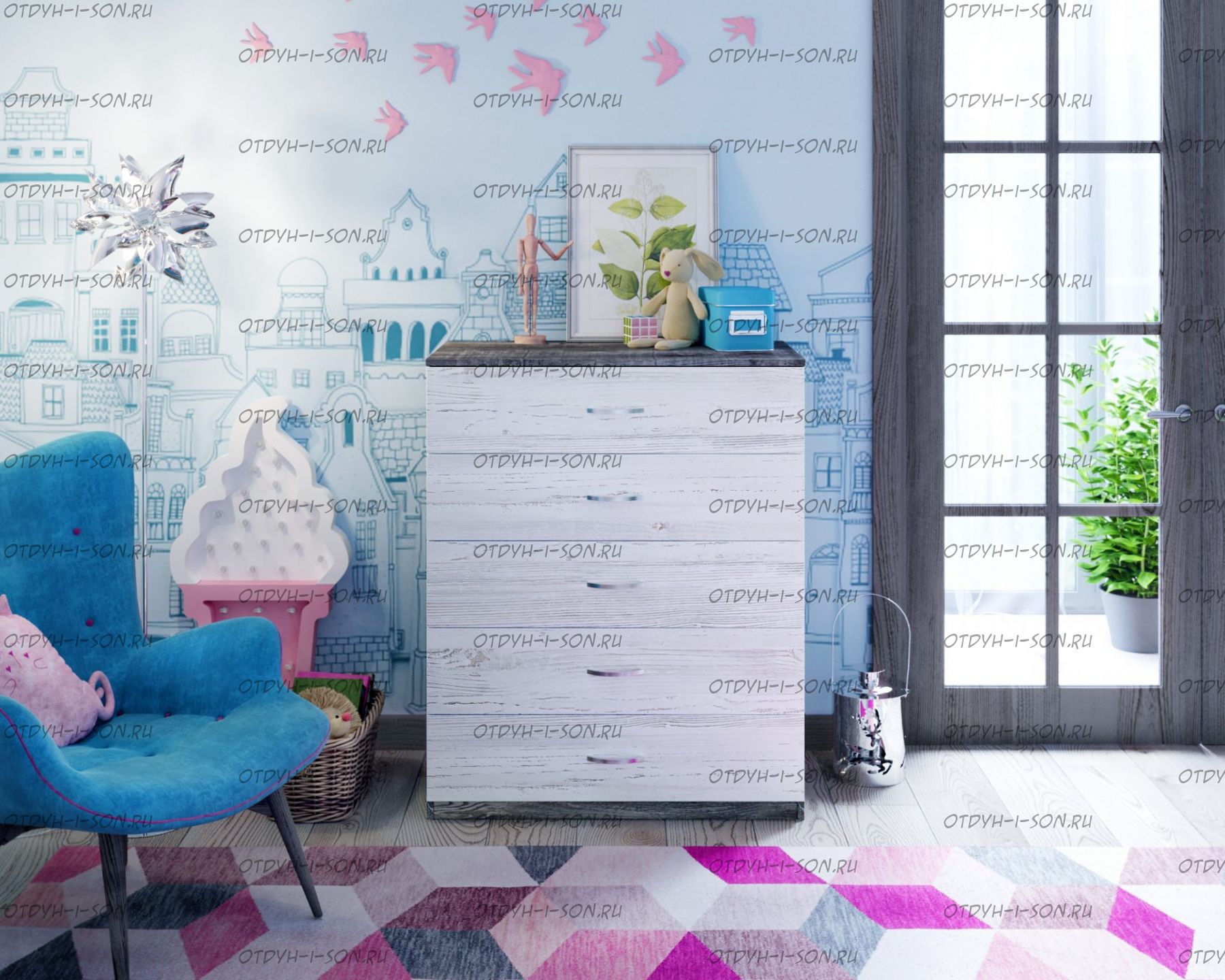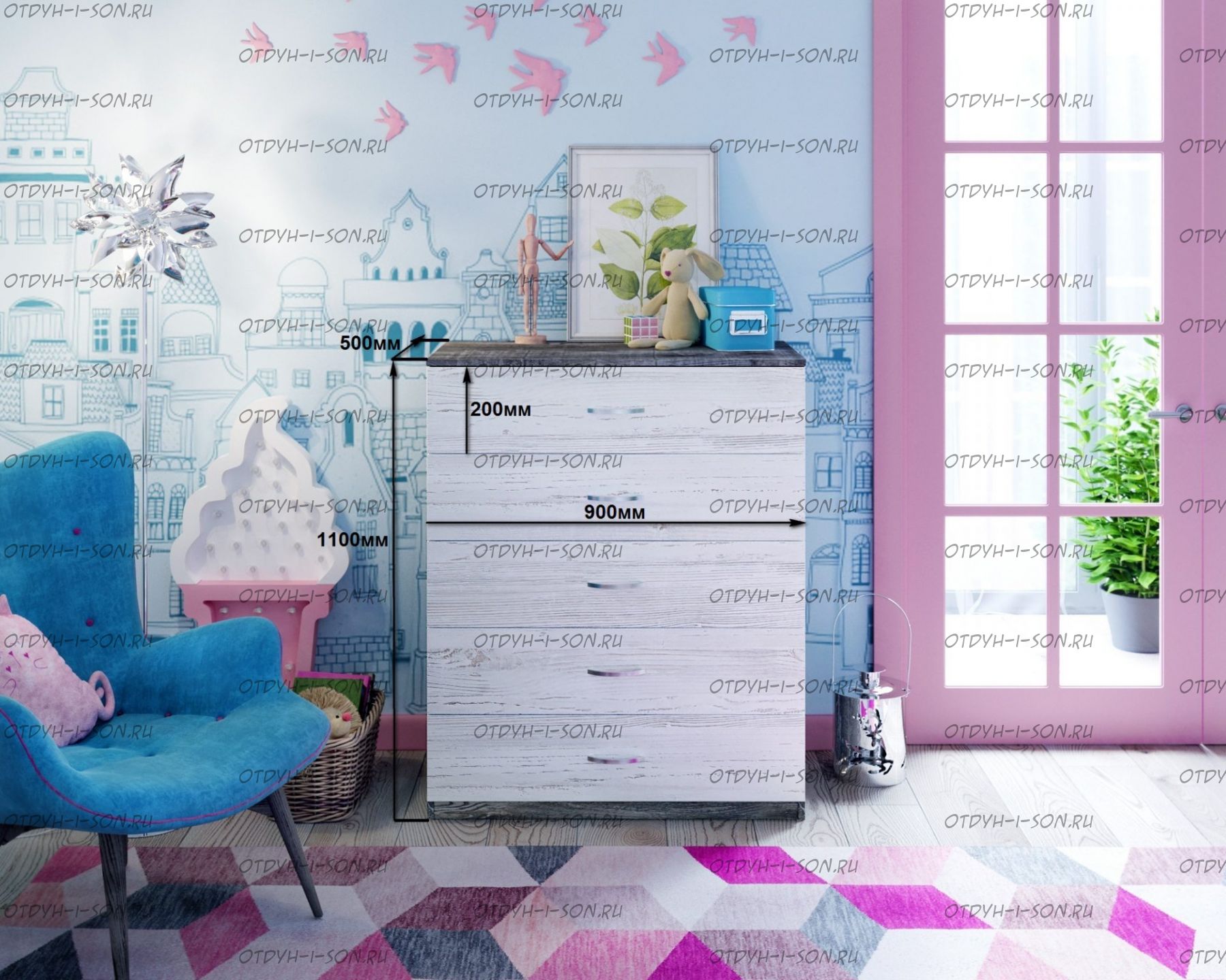 Комод №1 Характеристики: Габаритные размеры (ШхГхВ): 900Х500Х1100 мм Материалы: кромка АБС Вес: 36 кг Объем: 0,05 м3 Кол-во пактов: 3 шт. Цвета корпуса: Дуб молочный, венге, орех донской, вишня, бодего темный, белое дерево. Цвета фасада: розовый, оранжевый, ирис, лайм, голубой, зеленый, бежевый, красный, бодего темный, дуб молочный, венге, вишня, орех донской, белое дерево.