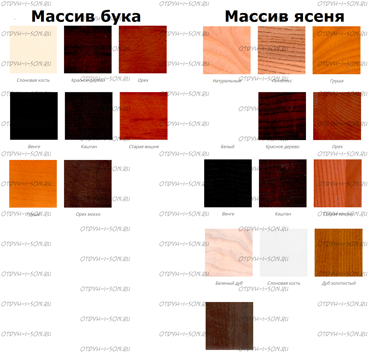 | Внимание | Покраска массива бука и ясеня в цвет "Груша" и "Натуральный" прибавляется 10% к цене изделия и увеличивается срок изготовления |