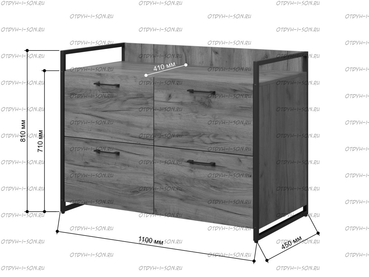 Комод Urban Лофт 01 Характеристики: Внешние габариты (ШхГхВ): 110х45х81 см. Цвета на выбор: более 5 цветов