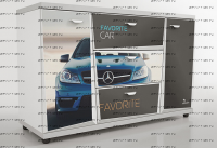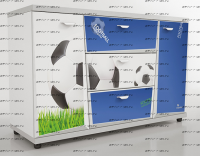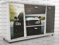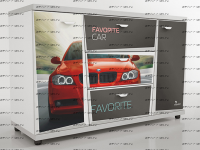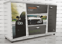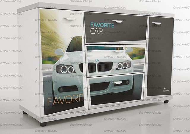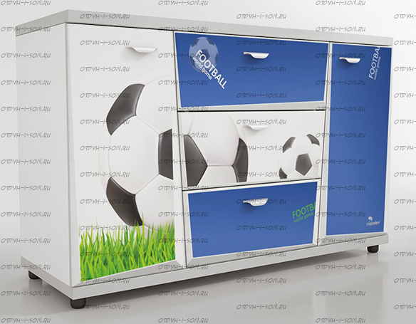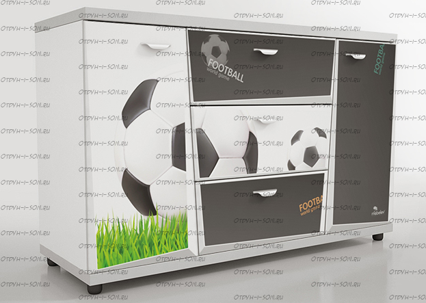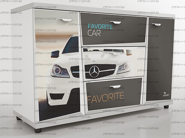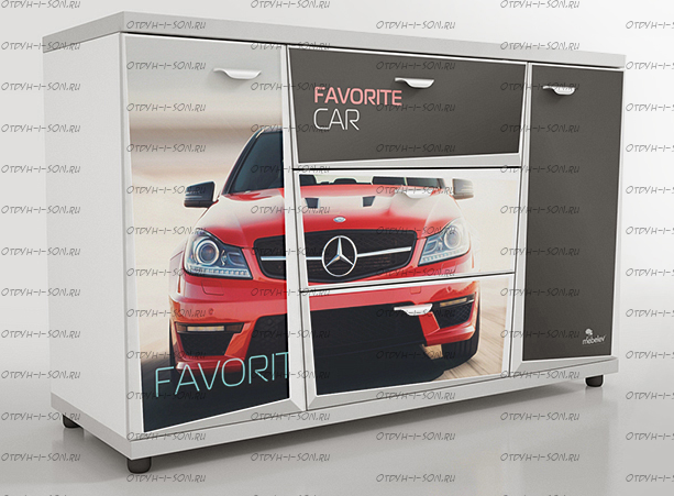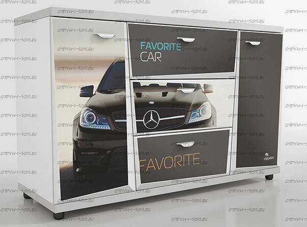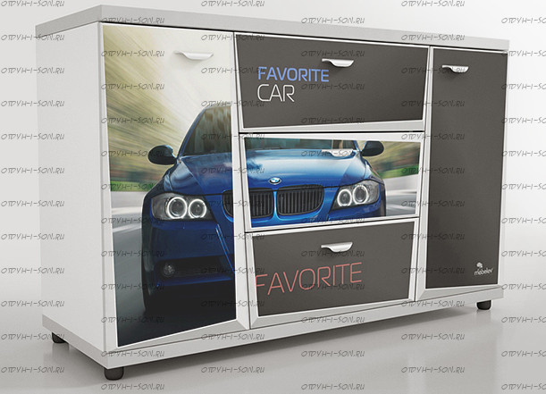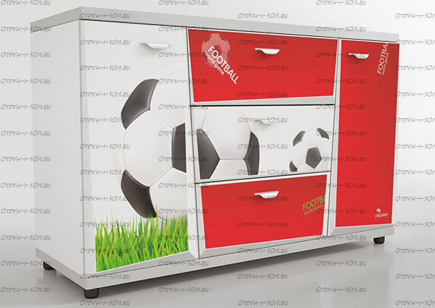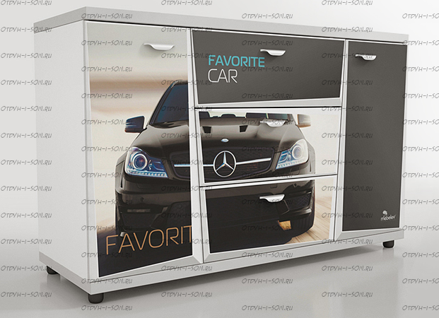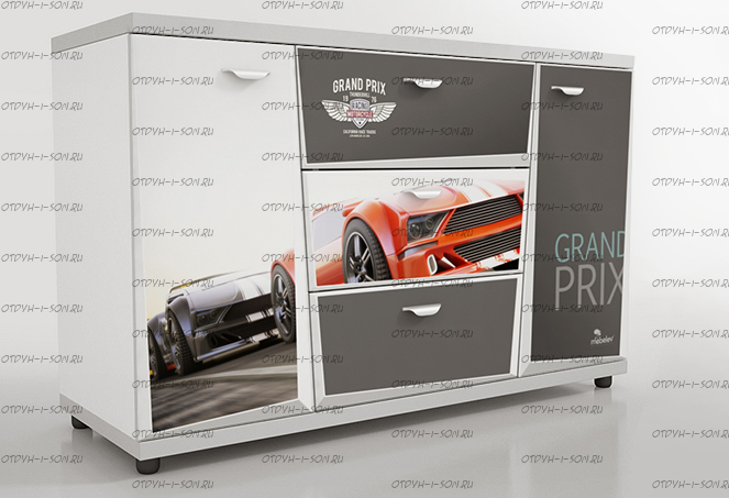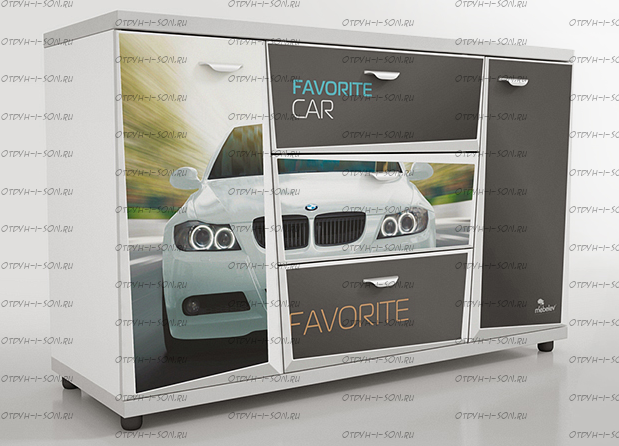 Комод Z4 Мебелев (1495х500х946) Характеристики: Внешние габариты (ШхГхВ): 1495х500х946 мм Две распашные дверцы Наполнение комода: три полочки Три выдвижных ящика Роликовые направляющие Объемный 3D рисунок на пленке покрыт защитной ламинацией Материал: ЛДСП 16 мм, 32 мм (верхняя и нижняя панель) Цвет: белый, красный, синий, черный