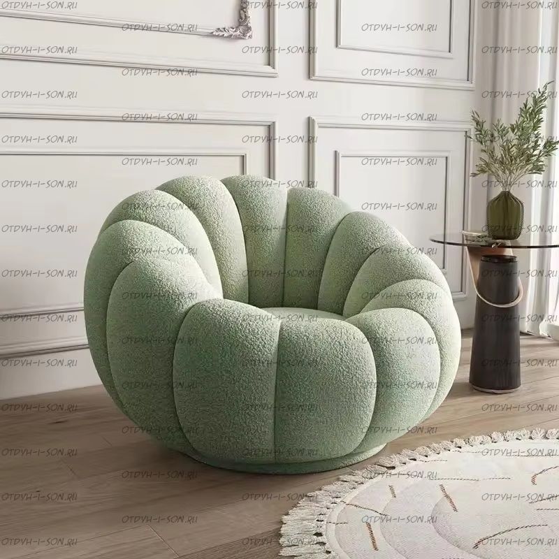 Кресло Berta Амстердам 1009.МО Характеристики: Внешние габариты (ШхГхВ): 105 х 120 х 90 см. или диаметр 110-120 см., высота 90 см Корпус: Каркас: Нестандарт: да! Наполнители: пенополиуретан, поролон, холлофайбер Вес: Объем: Кол-во упаковок: Цвет: любые на Ваш выбор