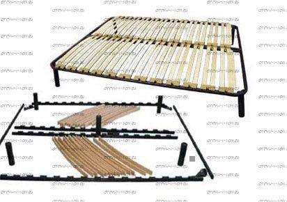 Кроватные ортопедические основания представляют собой металлическую раму с прикрепленными к ней ламелями из березового шпона для установки в короб кровати и применяются в комплекте с ортопедическими матрасами для создания спального места. Так же, как и комплектующие ортопедического матраса (конечно лишь в небольшой степени), прогибаясь, ламели выравнивают поверхностное давление. Помимо этого, за счет пружинящего эффекта, ламели частично разгружают пружинный блок, что увеличивает срок эксплуатации матраса.