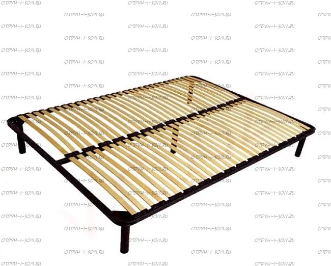 Основание поставляется в собранном виде с открученными ножками. Съемность ножек – еще одно из положительных качеств, характеризующих модель – это дает возможность использования основы как с ножками, так и без них в зависимости от Вашего желания и обстоятельств. Основание с узкими ламелями. Каркас основания выполнен из прочной стали с профилем 2,5х2,5 см, а ламели из березы.