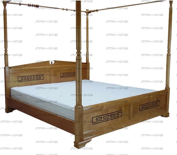 Кровать Афина с балдахином Характеристики: Размер спального места: 80х190/195/200, 90х190/195/200, 120х190/195/200, 140х190/195/200, 160х190/195/200, 180х190/195/200, 200х190/195/200 см. Комбинированная кровать: Массив сосны и вставки из экологически чистой мебельной фанеры Спинка в изголовье имеет резные элементы с художественной резьбой Габариты кроватей: Высота днища кроватей: Высота от пола до спального места: 25 см. Высота от пола до царги: 19 см. Ширина царги - 16 см., из них 10 см. составляет бортик, который держит матрас, остальные 6 см. под спальным местом, закрывают собой фурнитуру Основание кровати: да, в комплекте Подкроватные ящики: за дополнительную плату Ящики изготавливаются на колесиках и не прикрепляются к кровати, поэтому могут устанавливаться "лицом" к любой из боковыйх сторон кровати. Высота спинки в изголовье кровати: Крепления кровати: В базовом варианте с тыльной стороны ящиков декоративной планки не предусмотрено. Вес: 45-60кг. Любые размеры, в том числе и нестандартные Цвет: венге 1, венге 2, венге 3, венге 4, венге тон 2, коричневый тон 2, коричневый 1, коричневый 2, коричневый 3, коричневый 4, красно-коричневый тон 2, красно-коричневый 1, красно-коричневый 2, красно-коричневый 3, красно-коричневый 4, лак Изготовление из массива березы плюс 30% Изготовление в белом цвете или слоновая кость плюс 20%