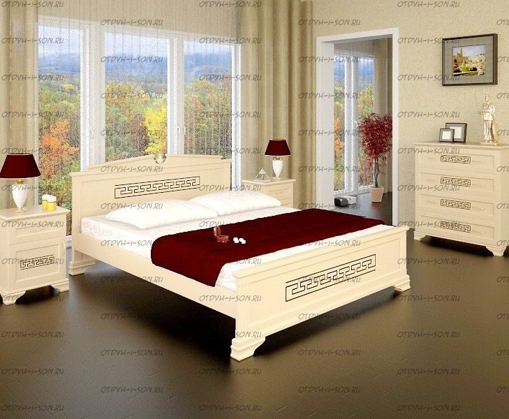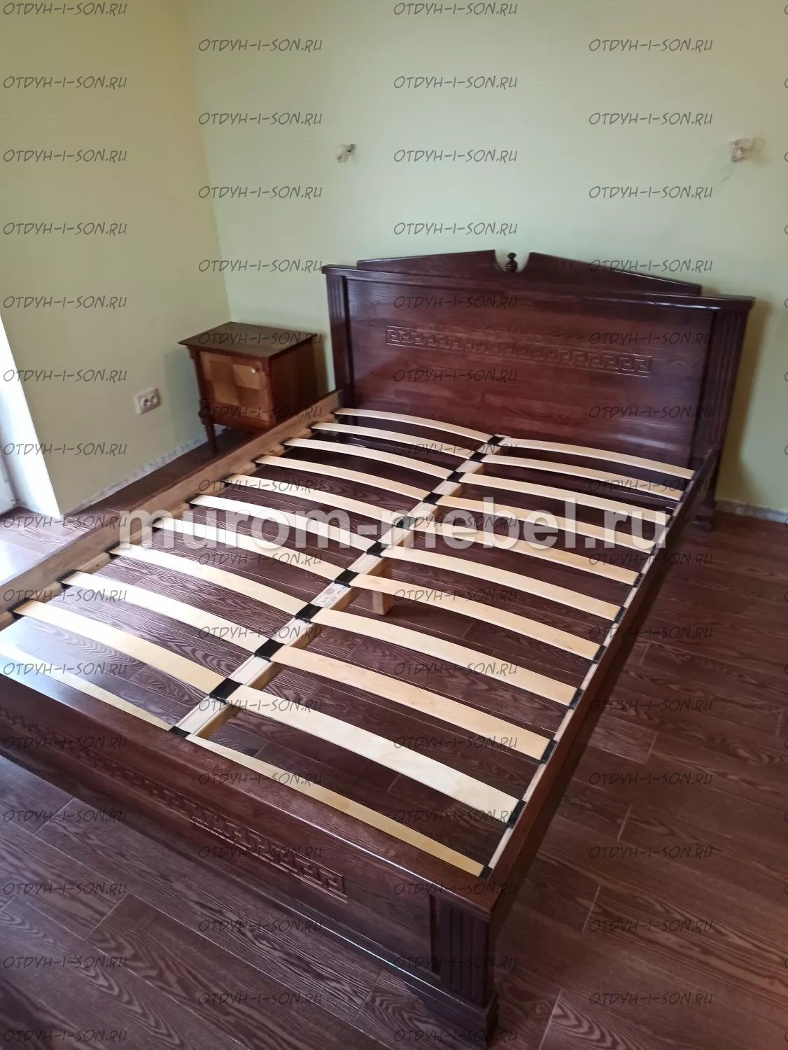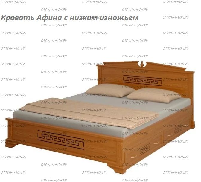 Кровать Афина Характеристики: Размер спального места: 80х190/195/200, 90х190/195/200, 120х190/195/200, 140х190/195/200, 160х190/195/200, 180х190/195/200, 200х190/195/200 см. Комбинированная кровать: Массив сосны и вставки из экологически чистой мебельной фанеры Спинка в изголовье имеет резные элементы с художественной резьбой Габариты кроватей: Высота днища кроватей: с матрасом 45см. Высота от пола до спального места: 25 см. Высота от пола до царги: 19 см. Ширина царги - 16 см., из них 10 см. составляет бортик, который держит матрас, остальные 6 см. под спальным местом, закрывают собой фурнитуру Основание кровати: подматрасники, ламельное основание - за дополнительную плату Ламельное основание: да, в комплекте Подкроватные ящики: за дополнительную плату Ящики изготавливаются на колесиках и не прикрепляются к кровати, поэтому могут устанавливаться "лицом" к любой из боковыйх сторон кровати. Высота спинки кровати: головная 88-90см. ножная 60-65см., нестандарт возможен. Крепления кровати: В базовом варианте с тыльной стороны ящиков декоративной планки не предусмотрено. Вес: 50кг. Объем:0,26 м3 Любые размеры, в том числе и нестандартные Цвет: венге 1, венге 2, венге 3, венге 4, венге тон 2, коричневый тон 2, коричневый 1, коричневый 2, коричневый 3, коричневый 4, красно-коричневый тон 2, красно-коричневый 1, красно-коричневый 2, красно-коричневый 3, красно-коричневый 4, лак Изготовление из массива березы плюс 30% Изготовление в белом цвете или слоновая кость плюс 20%