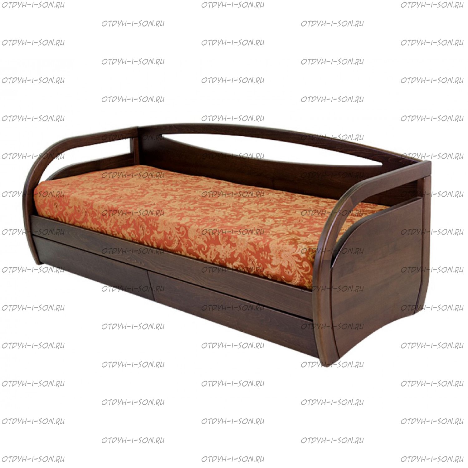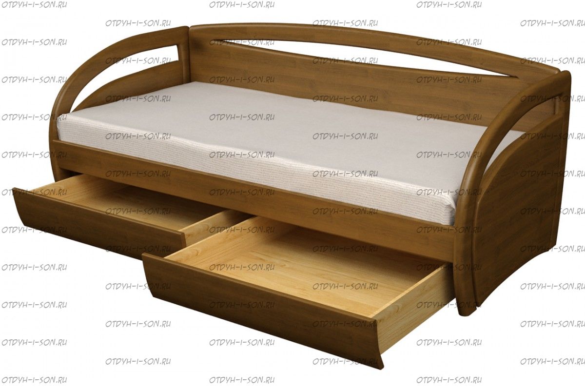 | Внимание | Внимание в базововом варианте подкатные ящики имеют ширину 75 см и глубину 75 см. каждый, даже при длине кровати 200 см. по спальному месту!!! За доплату ящики можно сделать больше размером!! |