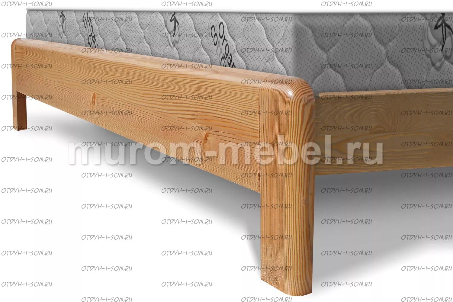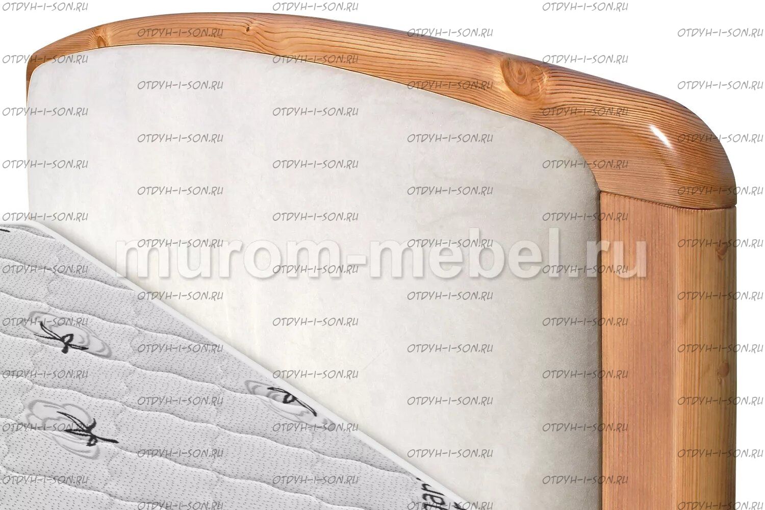Кровать отличается скромным дизайном, поэтому подходит для разных стилевых направлений. Украшением мебели является высокая изогнутая спинка с мягкой обивкой, на которую можно с лёгкостью облокотиться при чтении книг, просмотре ТВ и т.д. Основой выступает массив дерева.Характеристики: