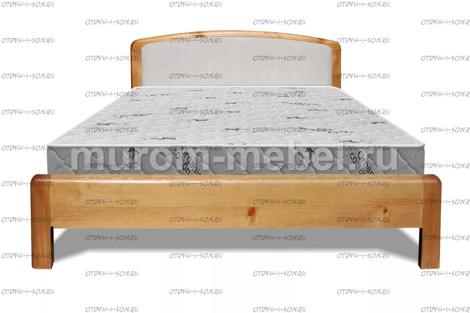 Кровать отличается скромным дизайном, поэтому подходит для разных стилевых направлений. Украшением мебели является высокая изогнутая спинка с мягкой обивкой, на которую можно с лёгкостью облокотиться при чтении книг, просмотре ТВ и т.д. Основой выступает массив дерева.Характеристики: