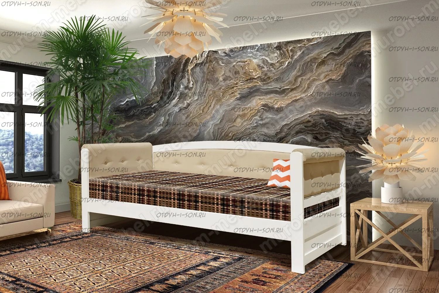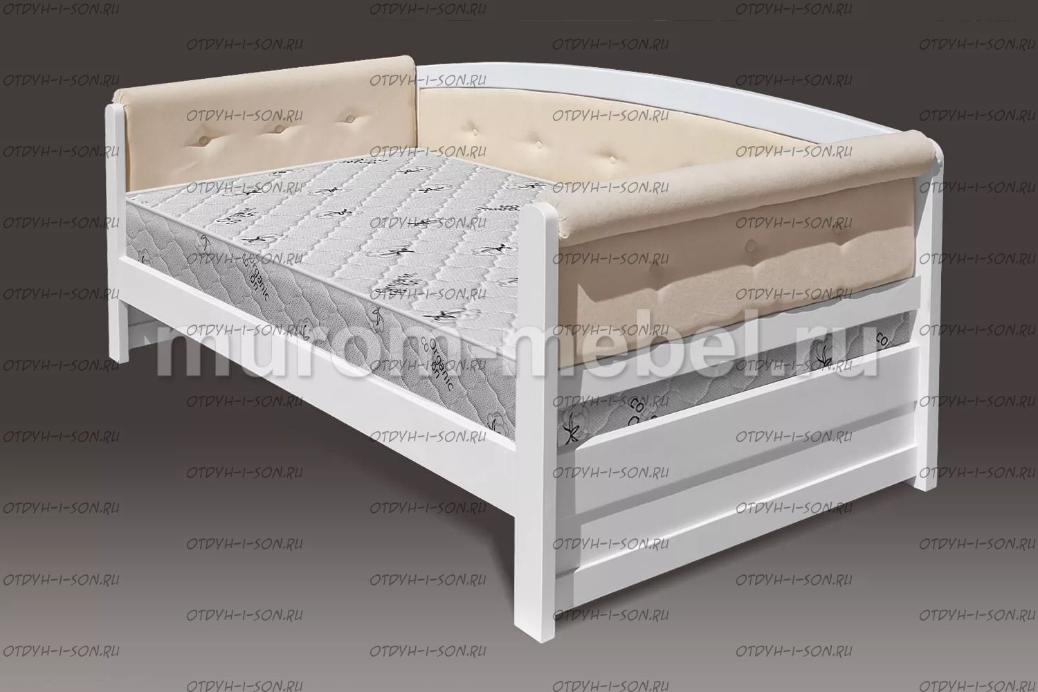 Кровать Верона мягкая Характеристики: Размер спального места: 80х190/195/200, 90х190/195/200, 120х190/195/200, 140х190/195/200, 160х190/195/200, 180х190/195/200, 200х190/195/200 см. Комбинированная кровать: Массив дерева и вставки из экологически чистой мебельной фанеры Спинка в изголовье имеет резные элементы с художественной резьбой Габариты кроватей: Высота днища кроватей: Высота от пола до спального места: 26 см. Высота от пола до царги: 20 см. Ширина царги - 16 см., из них 10 см. составляет бортик, который держит матрас, остальные 6 см. под спальным местом, закрывают собой фурнитуру Основание кровати: да, в комплекте Подкроватные ящики: за дополнительную плату Ящики изготавливаются на колесиках и не прикрепляются к кровати, поэтому могут устанавливаться "лицом" к любой из боковых сторон кровати. Высота спинки в изголовье кровати: 82 см, боковые 80 см Крепления кровати: В базовом варианте с тыльной стороны ящиков декоративной планки не предусмотрено. Вес: 45-60кг. Любые размеры, в том числе и нестандартные Цвет: венге 1, венге 2, венге 3, венге 4, венге тон 2, коричневый тон 2, коричневый 1, коричневый 2, коричневый 3, коричневый 4, красно-коричневый тон 2, красно-коричневый 1, красно-коричневый 2, красно-коричневый 3, красно-коричневый 4, лак Изготовление из массива березы плюс 30% Изготовление в белом цвете или слоновая кость плюс 20%