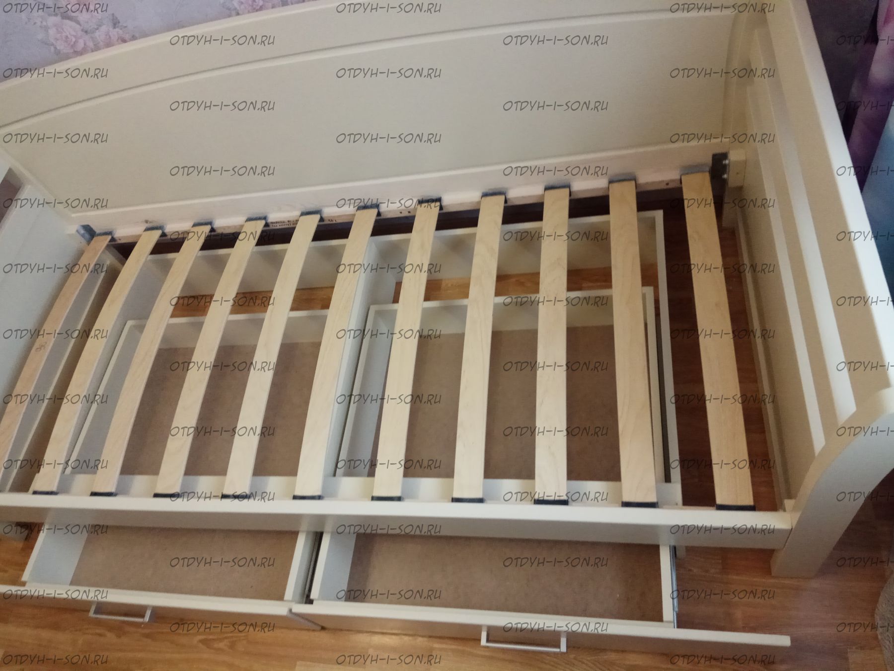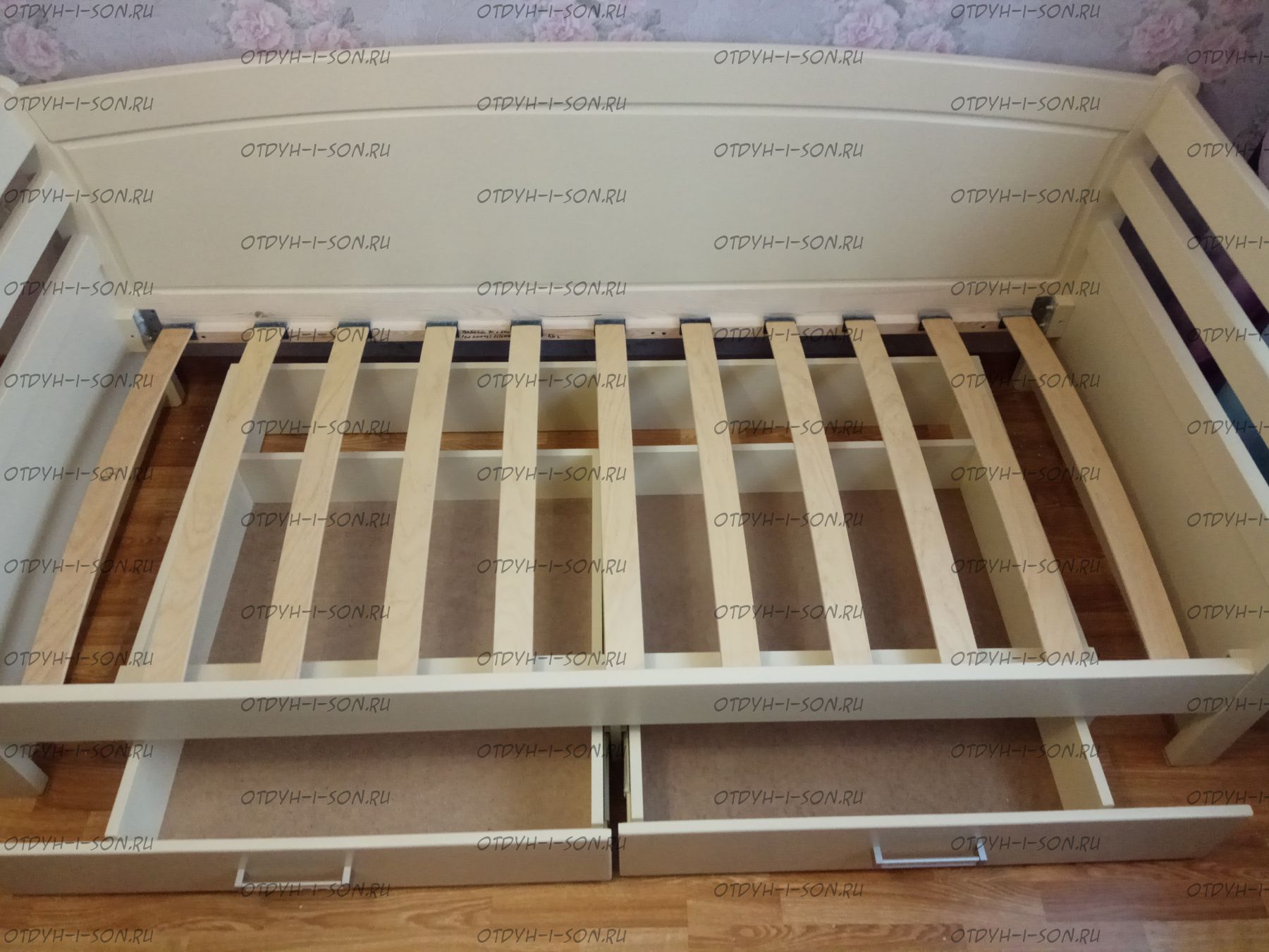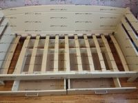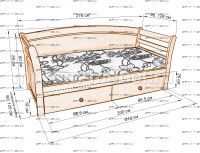 | Внимание | Внимание в базововом варианте подкатные ящики имеют ширину 75 см и глубину 75 см. каждый, даже при длине кровати 200 см. по спальному месту!!! За доплату ящики можно сделать больше размером!! |