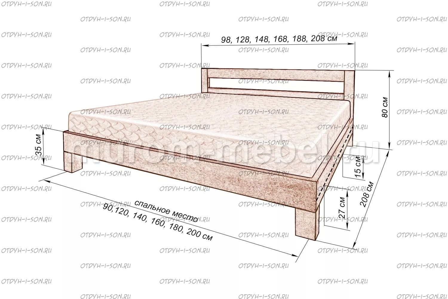 Кровать Витязь Характеристики: Размер спального места: 80х190/195/200, 90х190/195/200, 120х190/195/200, 140х190/195/200, 160х190/195/200, 180х190/195/200, 200х190/195/200 см. Массив сосны Габариты кроватей: Высота днища кроватей: Высота от пола до спального места: 27 см. Высота от пола до царги: 15 см. Ширина царги - см. Основание кровати: да, в комплекте Подкроватные ящики: за дополнительную плату Ящики изготавливаются на колесиках и не прикрепляются к кровати, поэтому могут устанавливаться "лицом" к любой из боковых сторон кровати. Высота спинки в изголовье кровати: 80см, ножная 35 см Крепления кровати: В базовом варианте с тыльной стороны ящиков декоративной планки не предусмотрено. Вес: 45-60кг. Любые размеры, в том числе и нестандартные Цвет: венге 1, венге 2, венге 3, венге 4, венге тон 2, коричневый тон 2, коричневый 1, коричневый 2, коричневый 3, коричневый 4, красно-коричневый тон 2, красно-коричневый 1, красно-коричневый 2, красно-коричневый 3, красно-коричневый 4, лак Изготовление в белом цвете или слоновая кость плюс 25%