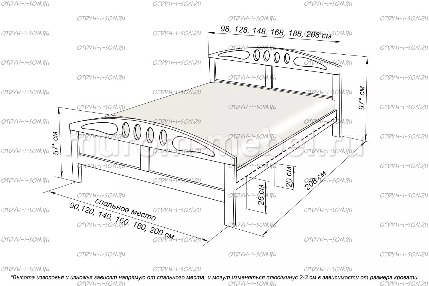 | Внимание | Увеличение высоты спинки: каждые +10 см. - 600 руб. |