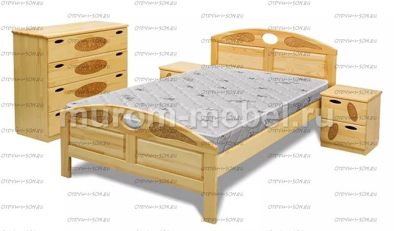 Кровать Галатея (сосна, резьба береза) Характеристики: Размер спального места: 80х190/195/200, 90х190/195/200, 120х190/195/200, 140х190/195/200, 160х190/195/200, 180х190/195/200, 200х190/195/200 см. Массив сосна Габариты кроватей: Высота днища кроватей: 26 см Высота от пола до спального места: 26 см. Высота от пола до царги: 20 см. Ширина царги - см. Основание кровати: да, в комплекте Подкроватные ящики: за дополнительную плату Ящики изготавливаются на колесиках и не прикрепляются к кровати, поэтому могут устанавливаться "лицом" к любой из боковых сторон кровати. Высота спинки в изголовье кровати: 97 см, ножная 57 см Крепления кровати: В базовом варианте с тыльной стороны ящиков декоративной планки не предусмотрено. Вес: 45-60кг. Любые размеры, в том числе и нестандартные Цвет: венге 1, венге 2, венге 3, венге 4, венге тон 2, коричневый тон 2, коричневый 1, коричневый 2, коричневый 3, коричневый 4, красно-коричневый тон 2, красно-коричневый 1, красно-коричневый 2, красно-коричневый 3, красно-коричневый 4, лак Изготовление в белом цвете или слоновая кость плюс 25%