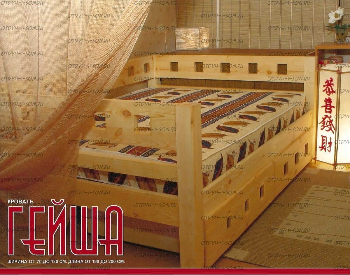Кровать из массива дерева. Кровать Гейша №В, любые размеры - это качественно исполненная из массива дерева детская и подростковая кровать. Кровать Кадет удобна и функциональна, и прекрасно впишется в комнату ребенка, создав уют, добавит функциональности и сохранит достаточное жизненное пространство детской комнаты.