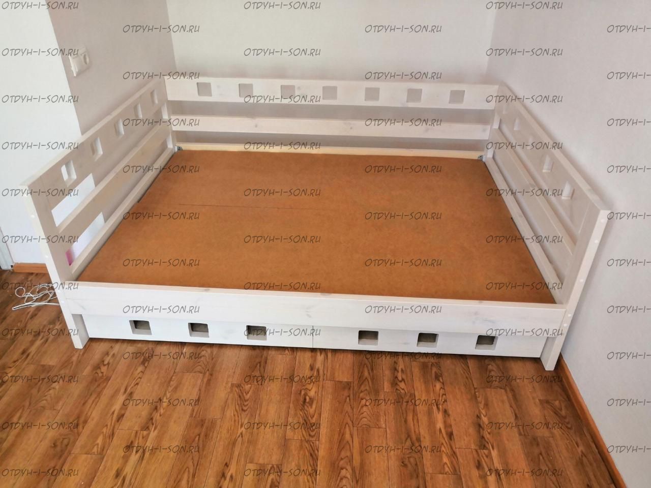 Выкатные ящики делают кровать еще более функциональной. Ящики не закрепляются в кровати. Ламельное основания изготавливаются из гнутых ламелей в металлическом основании (4 ножки).