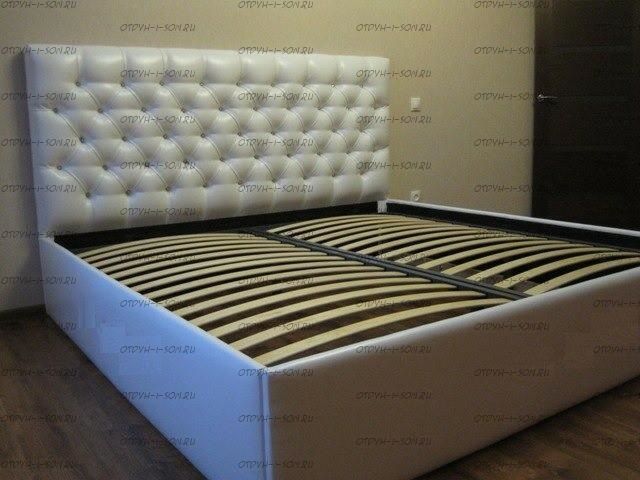 Отделка изголовья кровати - экокожа, боковины кровати выполнены из экокожи.