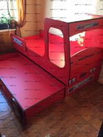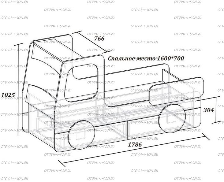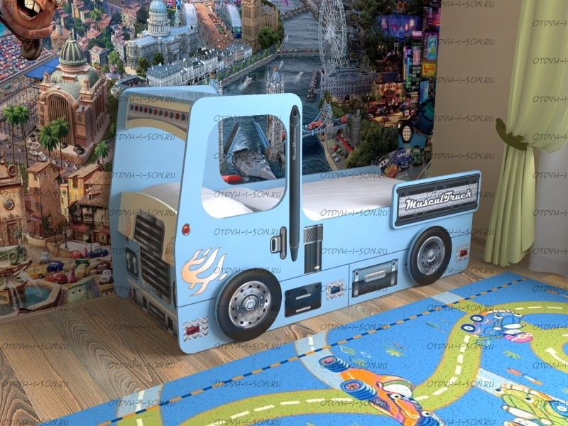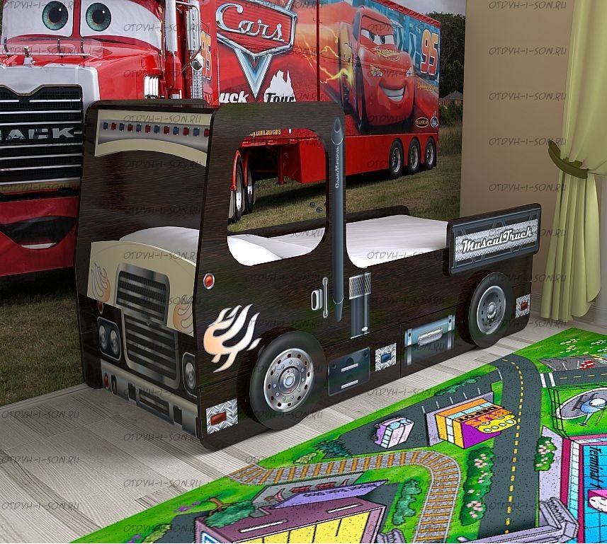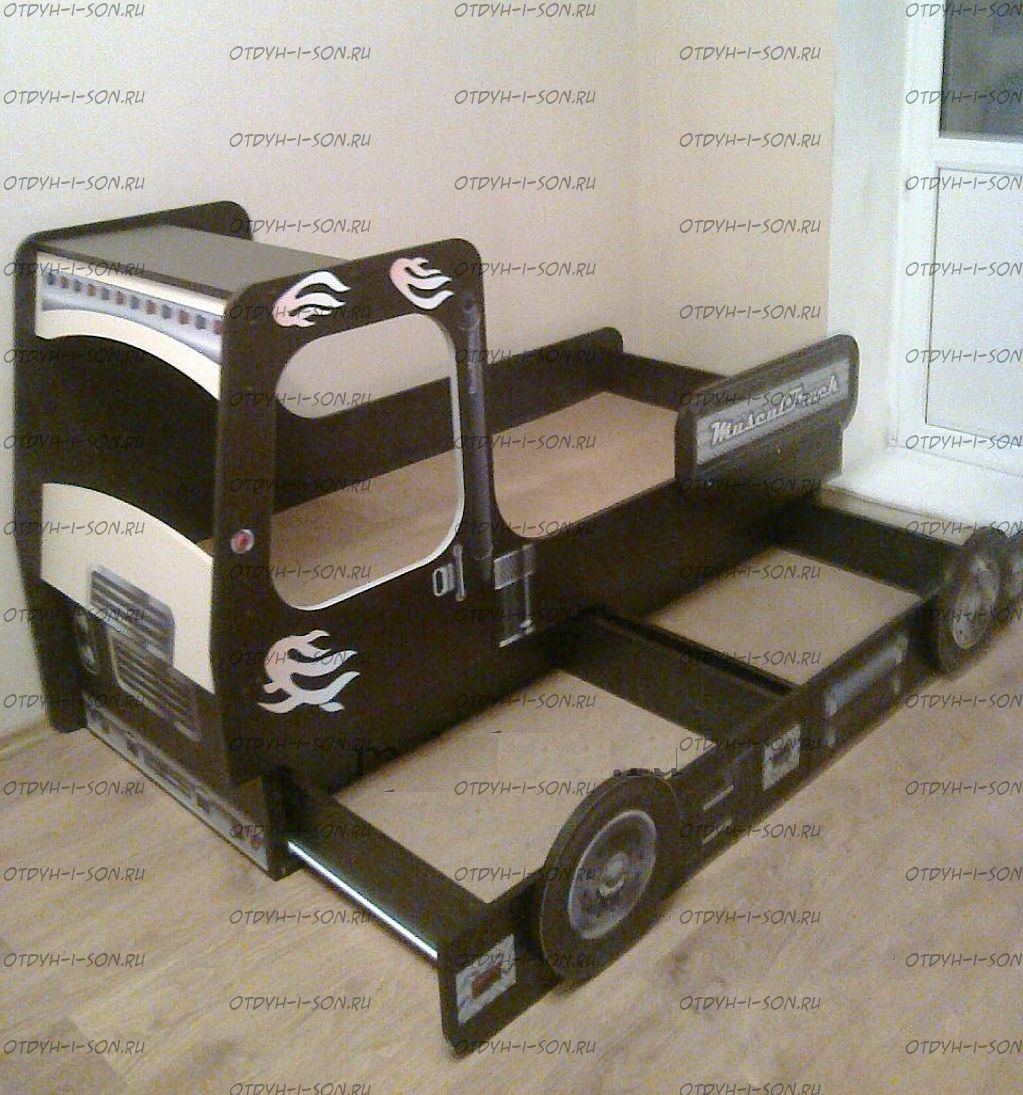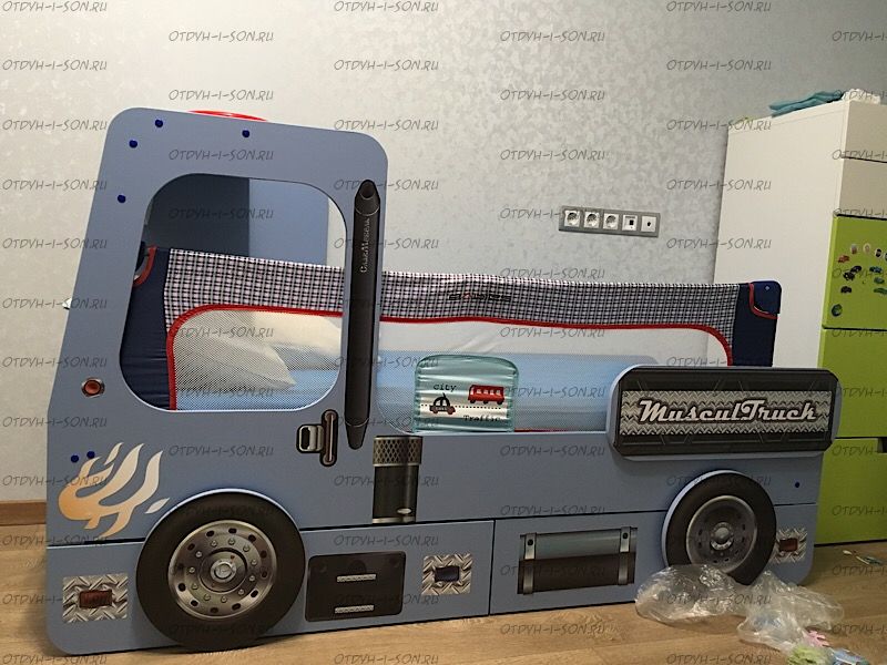 Кровать Грузовик с ящиками Характеристики: Размер спального места: 70х160 Внешние габариты: 1025х1786х766 Вес: 65 кг Размер спального места: 80х190 Внешние габариты: 1025х2086х866 Вес: 75 кг Материалы: ЛДСП Дно кровати выполнено из щита ХДФ в полном размере спального места. Гарантия, год: 2 Материал ЛДСП Складская программа Вес: Объем: Цвет корпуса: Цвет фасада: Любой цвет корпуса Вы можете скомбинировать с любым цветом фасада. К нижней кровати вы можете приобрести дополнительный съемный бортик, который убережет ребенка от падения.
