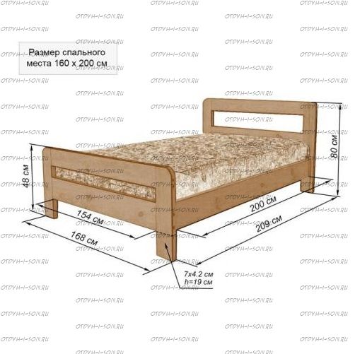 Кровать Дачная-3М Характеристики: Размер спального места: 80х190/195/200, 90х190/195/200, 120х190/195/200, 140х190/195/200, 160х190/195/200, 180х190/195/200, 200х190/195/200 см. Комбинированная кровать: Массив сосны и вставки из экологически чистой мебельной фанеры Спинка в изголовье имеет резные элементы с художественной резьбой Габариты кроватей: Высота днища кроватей: Основание кровати: Ламельное основание: да, в комплекте Подкроватные ящики: за дополнительную плату Ящики изготавливаются на колесиках и не прикрепляются к кровати, поэтому могут устанавливаться "лицом" к любой из боковыйх сторон кровати. Высота спинки в изголовье кровати: Крепления кровати: В базовом варианте с тыльной стороны ящиков декоративной планки не предусмотрено. Вес: 45-60кг. Любые размеры, в том числе и нестандартные Цвет: венге 1, венге 2, венге 3, венге 4, венге тон 2, коричневый тон 2, коричневый 1, коричневый 2, коричневый 3, коричневый 4, красно-коричневый тон 2, красно-коричневый 1, красно-коричневый 2, красно-коричневый 3, красно-коричневый 4, лак Изготовление из массива березы плюс 30% Изготовление в белом цвете или слоновая кость плюс 20%