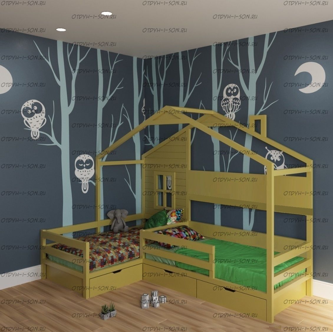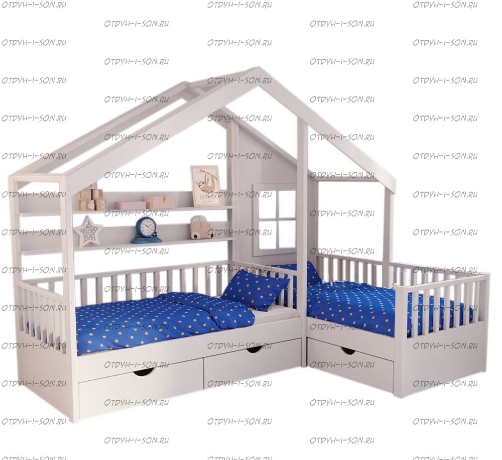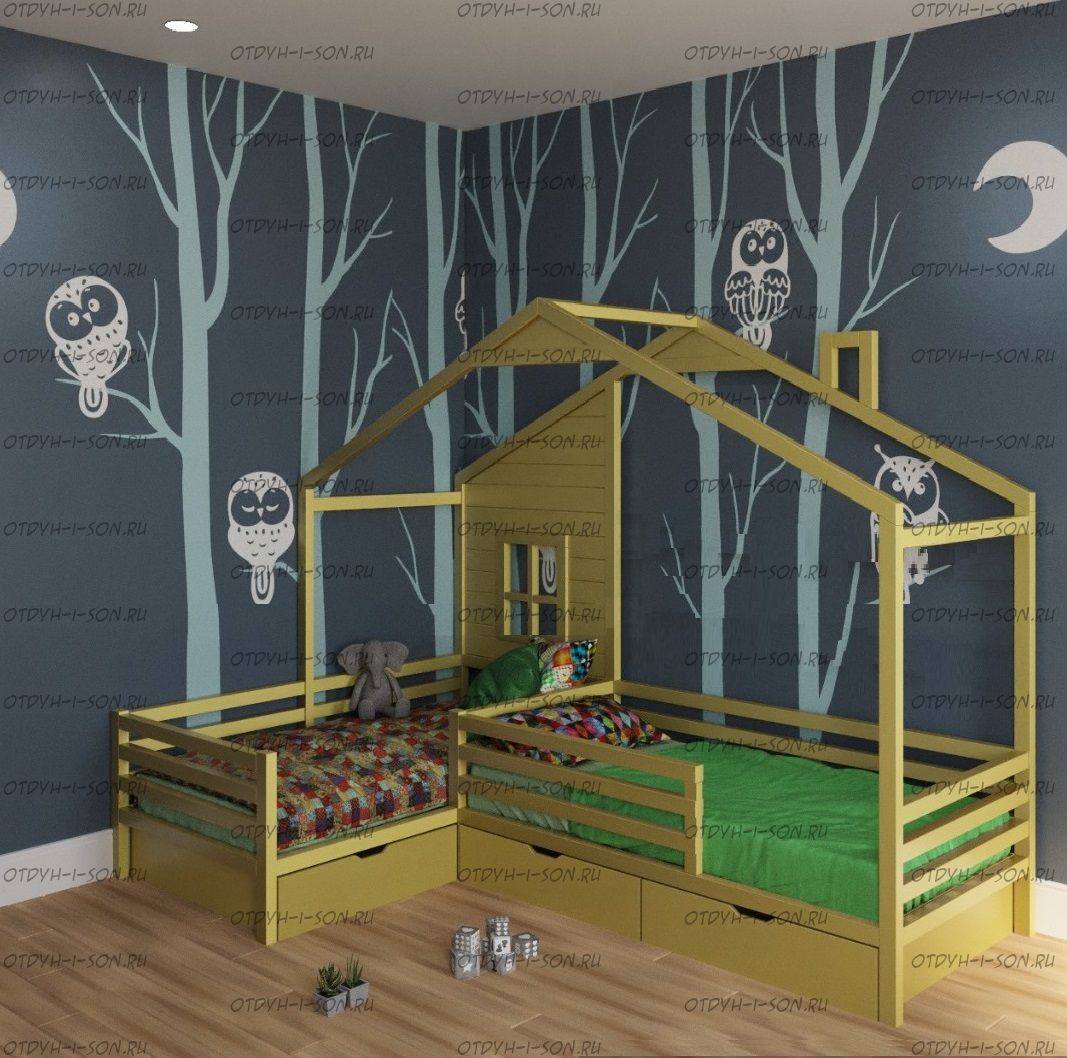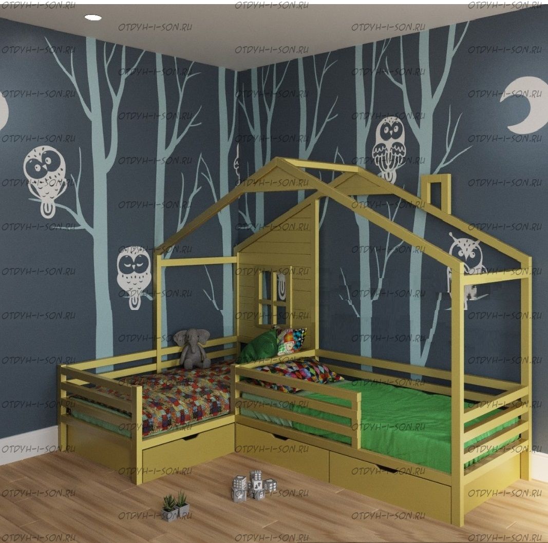 Кровать Домик Угловой Fairy Land №42 (Для Двоих Детей) может быть изготовлена как кровать для новорожденного, любые размеры.